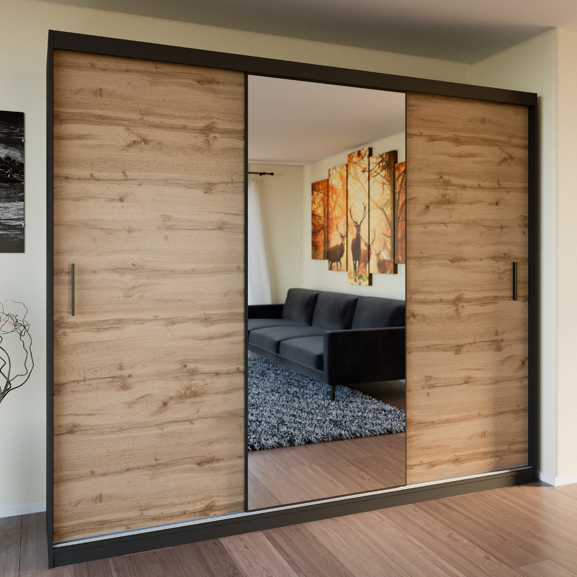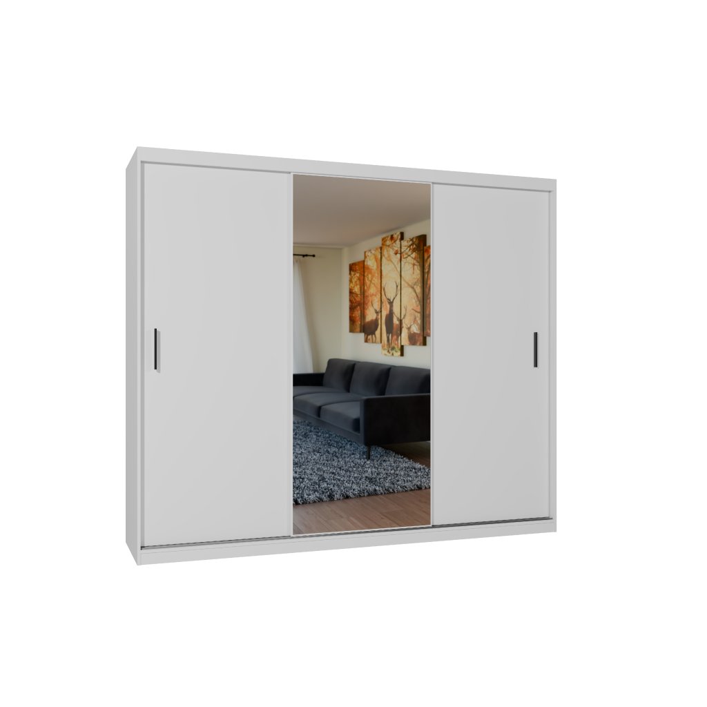Třídvéřová skříň se zrcadlem
