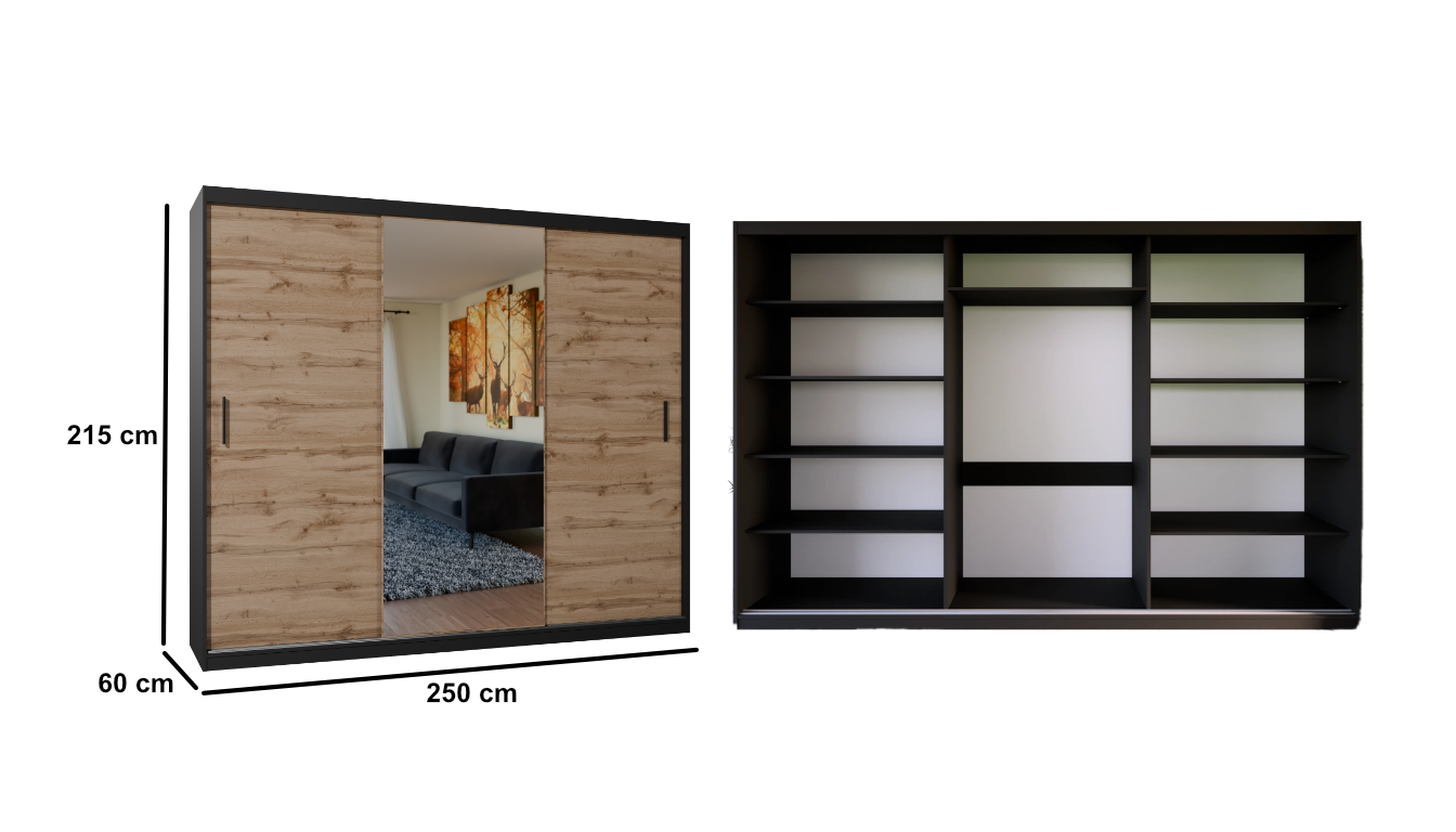 Posuvná šatní skříň se zrcadlem MONTAIRE 250 cm