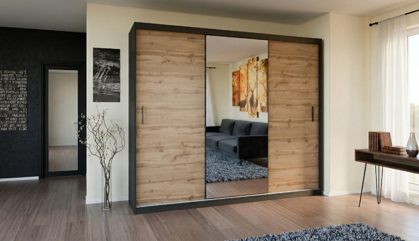 Třídvéřová skříň se zrcadlem