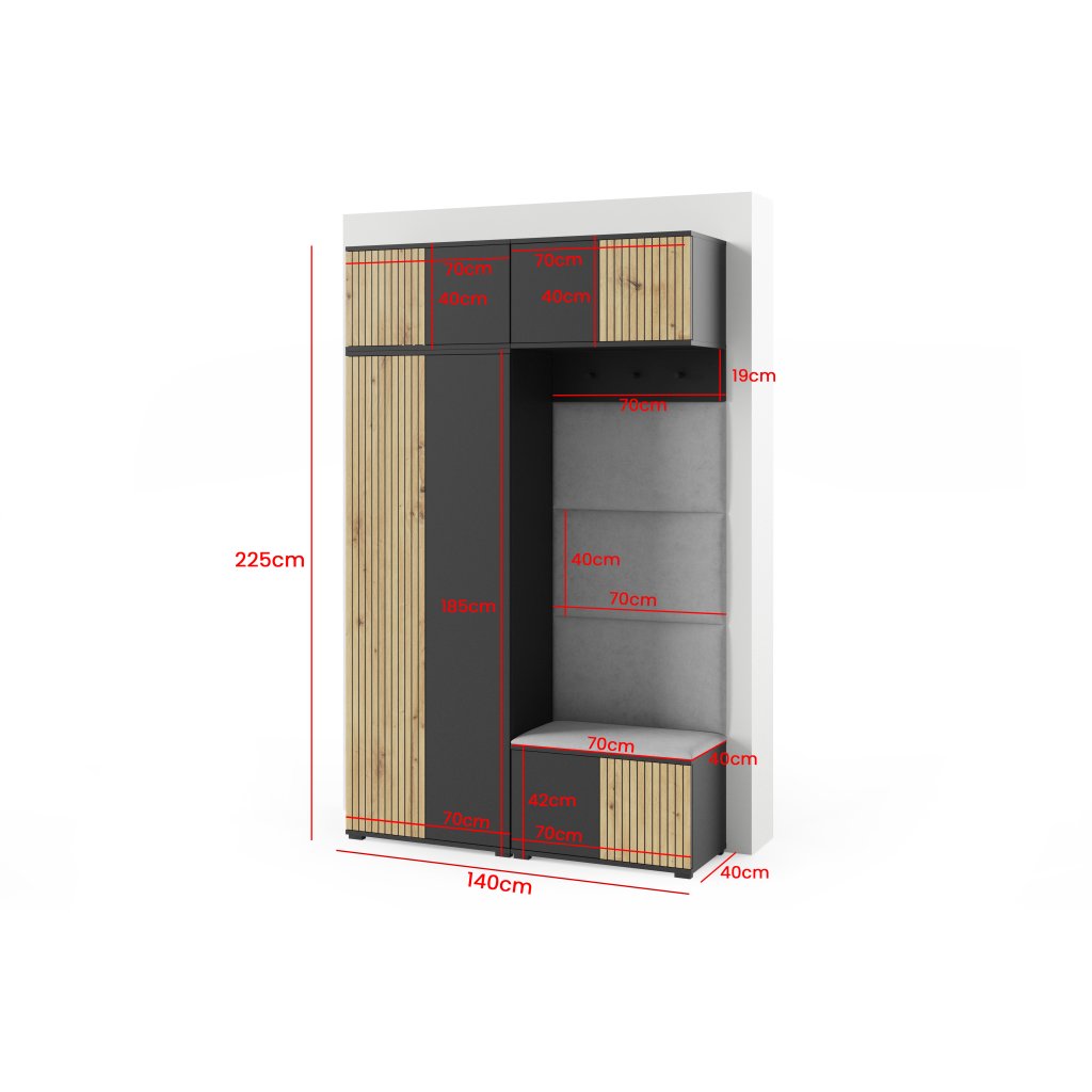 | Šatní skříň: | 70 x 185 x 40 cm |