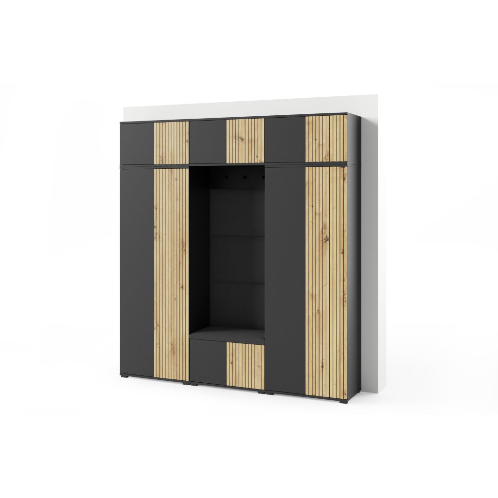 Předsíňová stěna s čalouněnými panely Joey 4 - Černá a Dub Artisan / Černá 2316