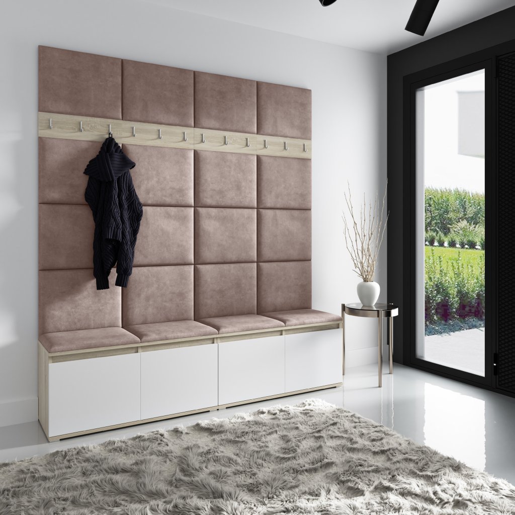 Předsíňová stěna s čalouněnými panely Trinity 4 - Bílá sonoma / Tmavá béžová 2305