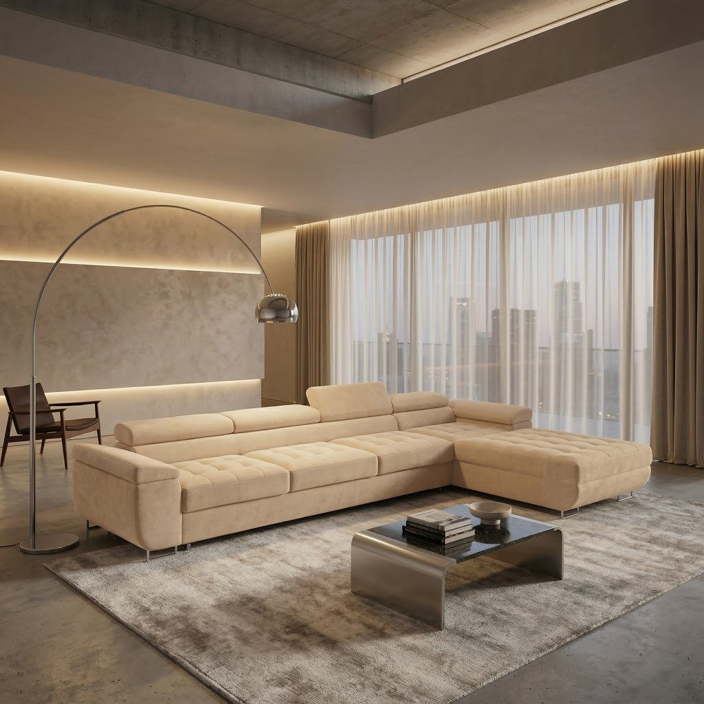 Stínování: Látka Kronos má jemně sametový, hladký povrch s lehkým vlasem – při dopadu světla a změně směru pohledu se odstín mírně proměňuje, což vytváří elegantní stínování a dodává nábytku pocit hloubky a luxusního vzhledu.