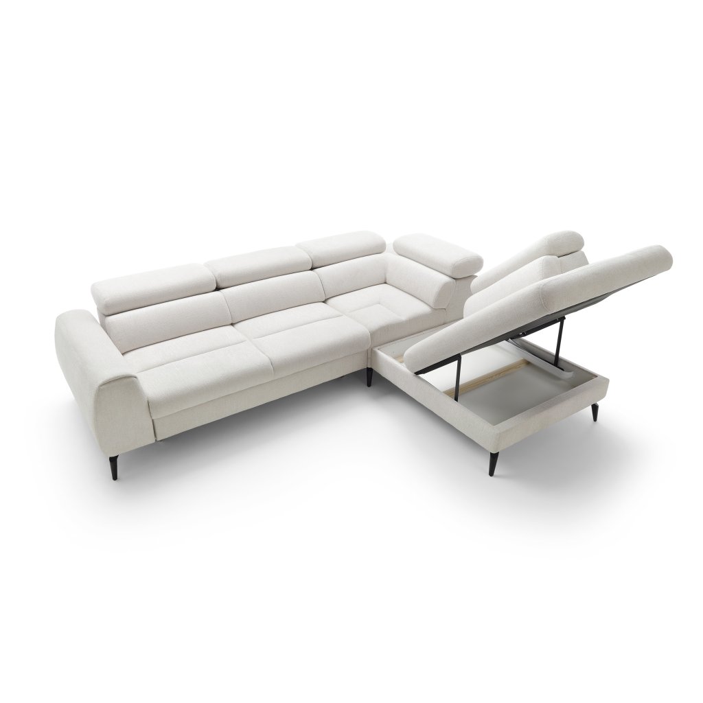 Praktický box schovaný uvnitř – na deky, polštáře i všechny drobnosti, co nechceš mít na očích.
