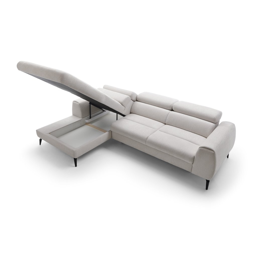 Praktický box schovaný uvnitř – na deky, polštáře i všechny drobnosti, co nechceš mít na očích.