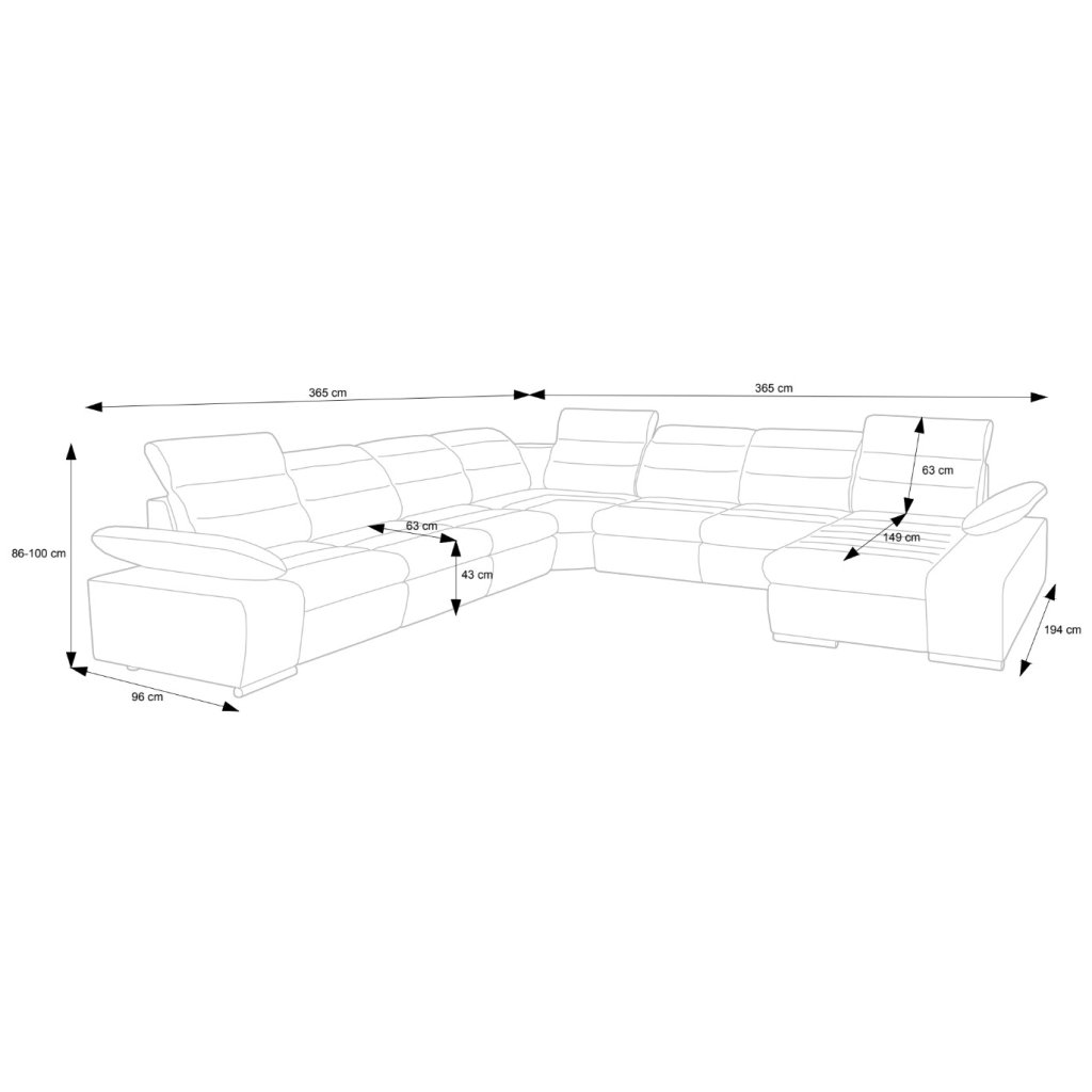 Celková šířka: 365 cm