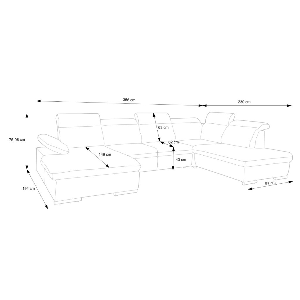 Rohová sedací souprava OLIE II do U, 356 cm
