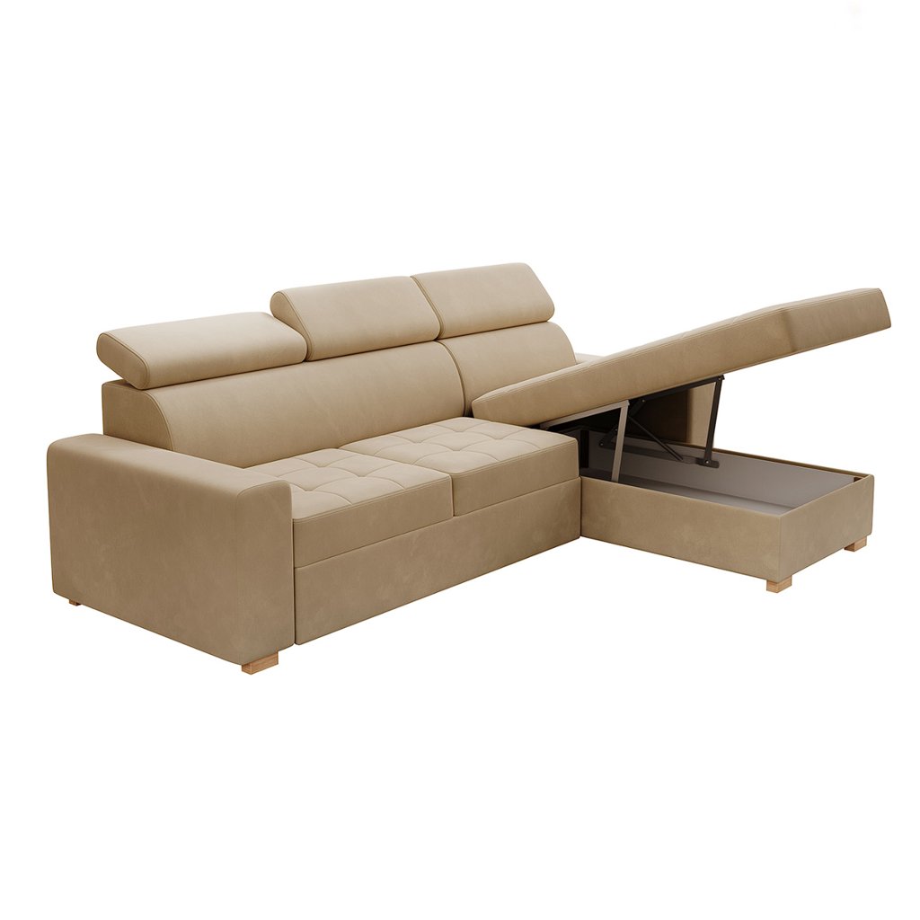 Rohová sedací souprava MONSUM ve tvaru L je spolehlivým parťákem do každého obýváku. Nabízí pohodlné sezení pro rodinu i návštěvy – a když se večer protáhne, snadno ji rozložíš na prostorné lůžko. Uvnitř se skrývá praktický úložný prostor, kam se vejdou deky, peřiny nebo třeba tvoje oblíbené dobroty. Potahy jsou ušité z tkanin s certifikací OEKO-TEX®, takže si můžeš být jistý, že jsou šetrné k tobě i k přírodě. A aby ladila i s tvým vkusem? Vyber si barvu látky – sedačku nabízíme v několika elegantních variantách.