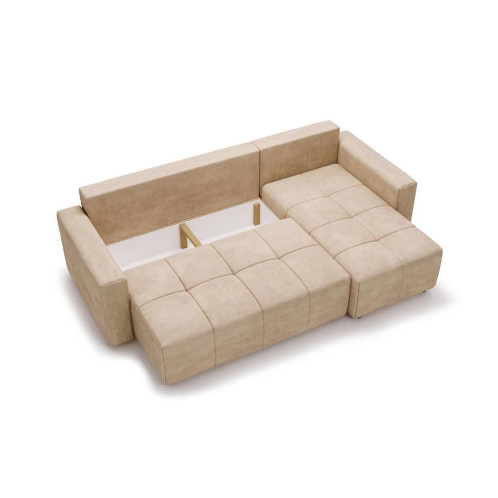 Praktický box schovaný uvnitř – na deky, polštáře i všechny drobnosti, co nechceš mít na očích.