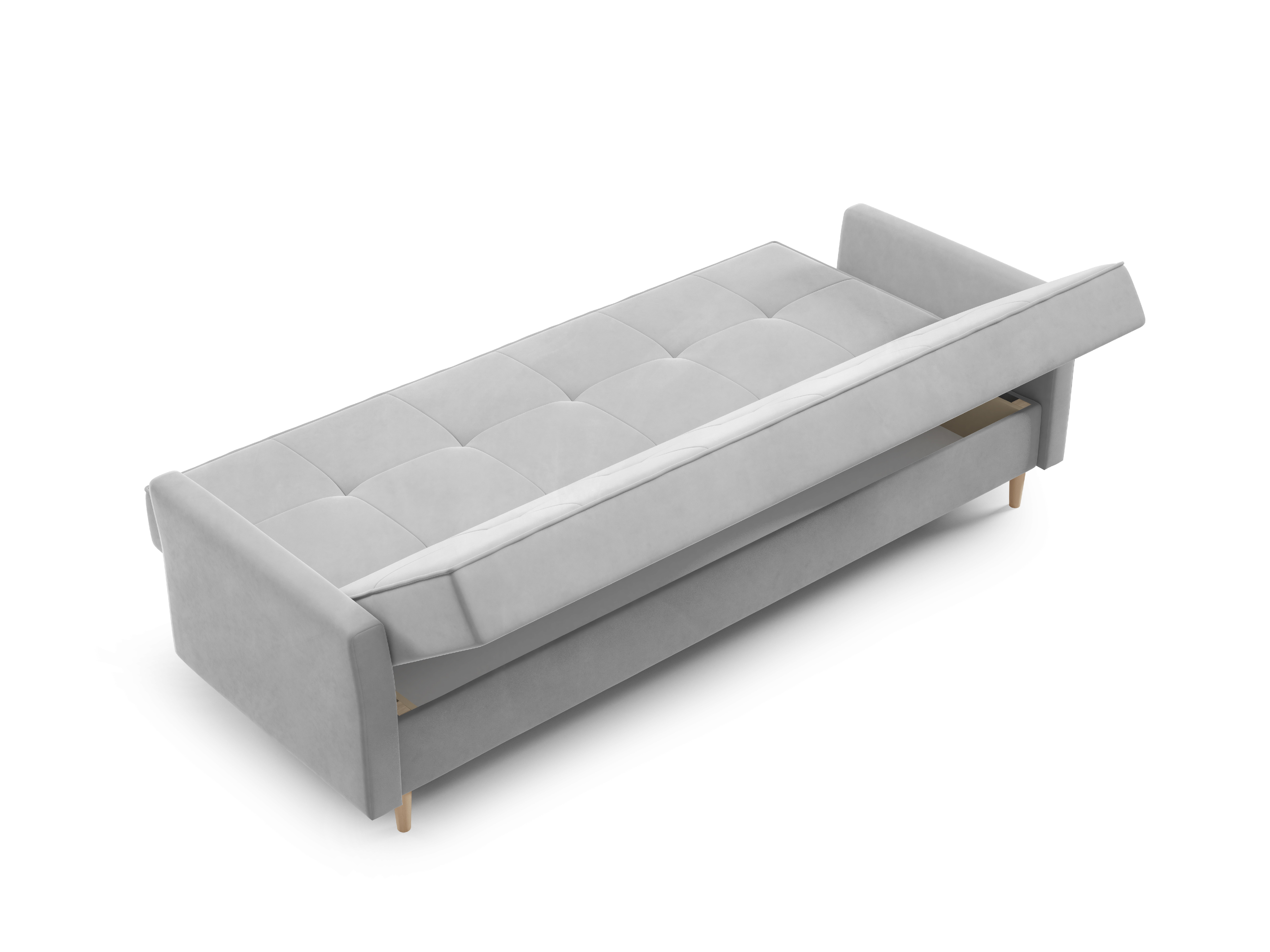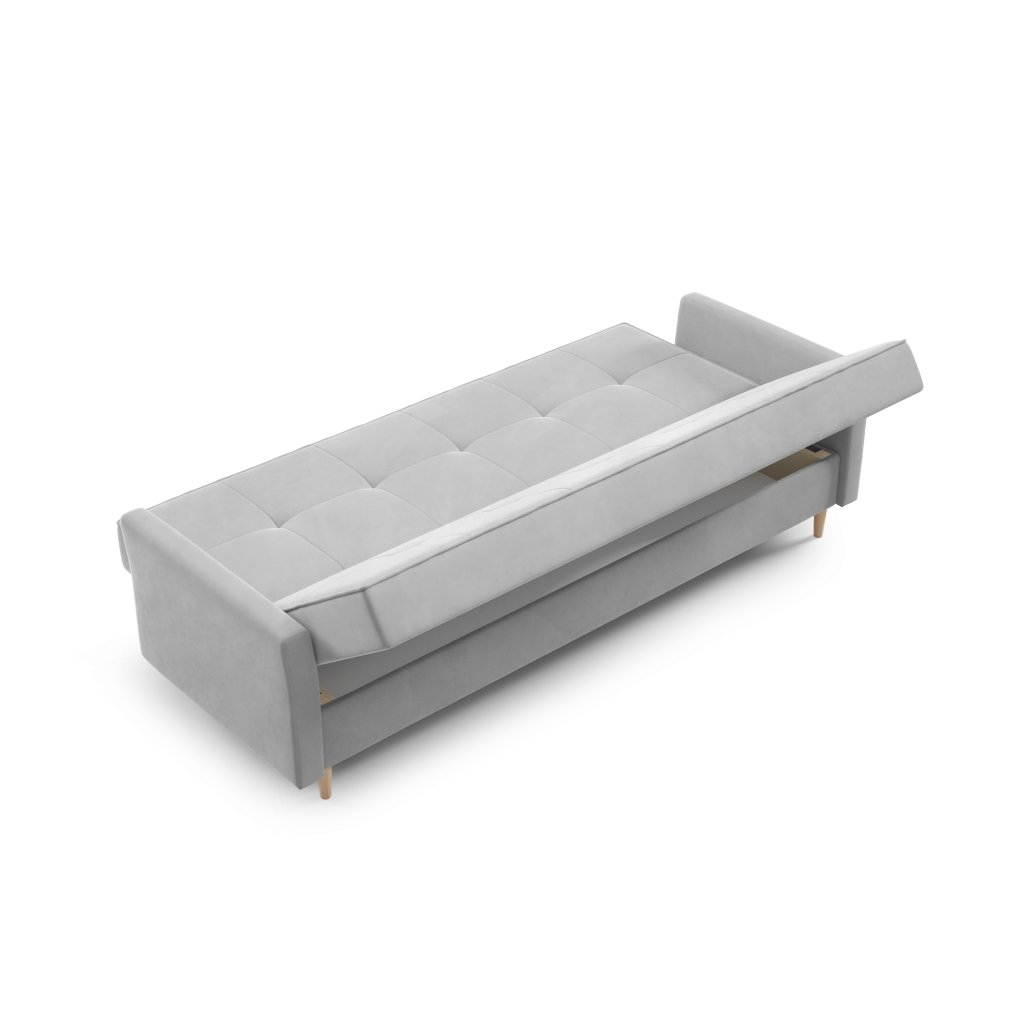 Praktický box schovaný uvnitř – na deky, polštáře i všechny drobnosti, co nechceš mít na očích.