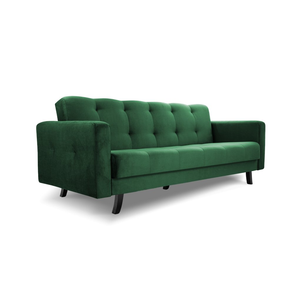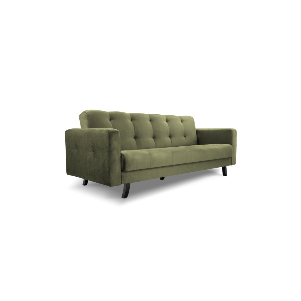 Rozkládací pohovka (gauč) LISA, která skvěle zapadne do moderních interiérů. Vyznačuje se dekorativním prošíváním po celé pohovce, která dokonale ladí s jednoduchým tvarem pohovky. Další dekorativní akcent jsou dřevěné černé nohy. Celek doplňuje sametová látka, která je hitem aktuálních trendů. Pohovka je plně rozkladatelná do spací plochy 118 x 195 cm včetně úložného prostoru pro lůžkoviny.