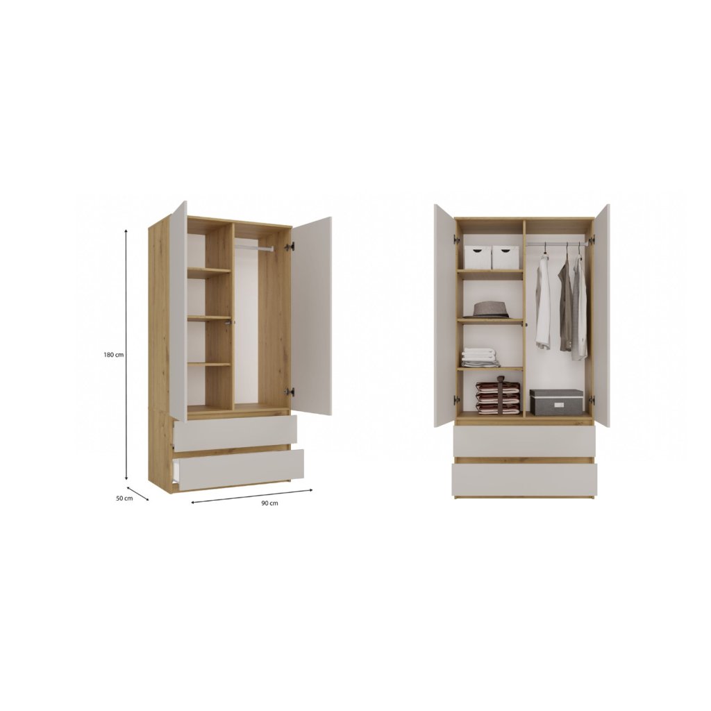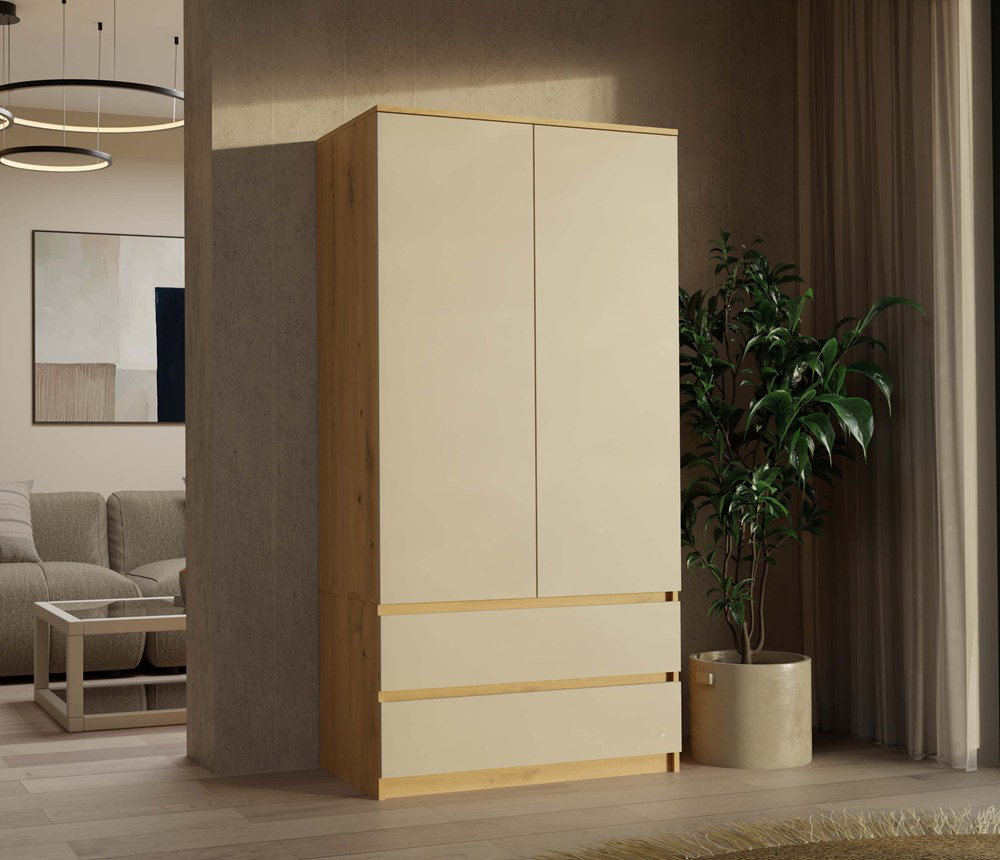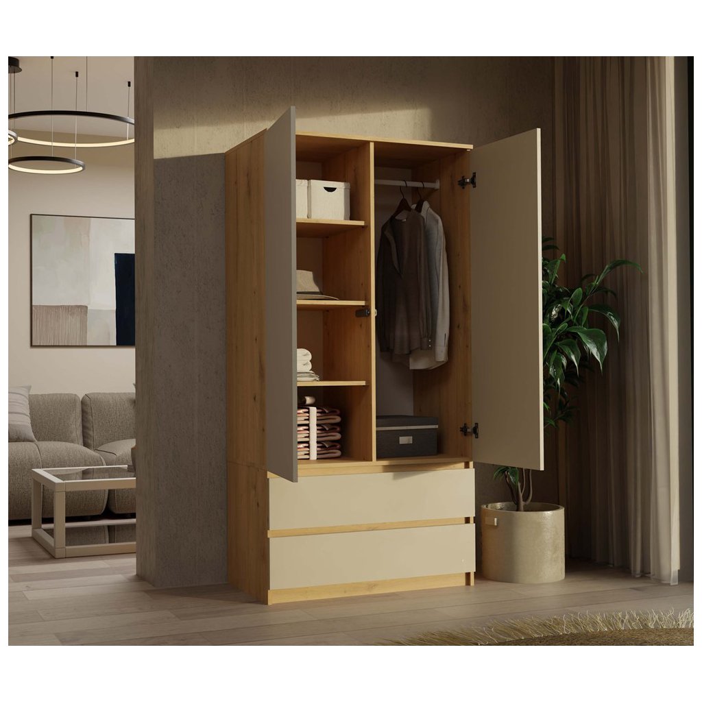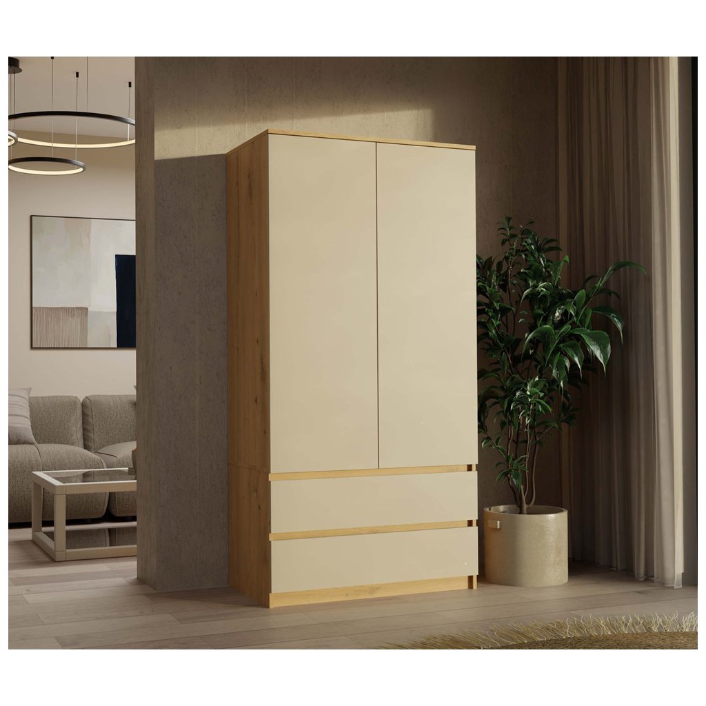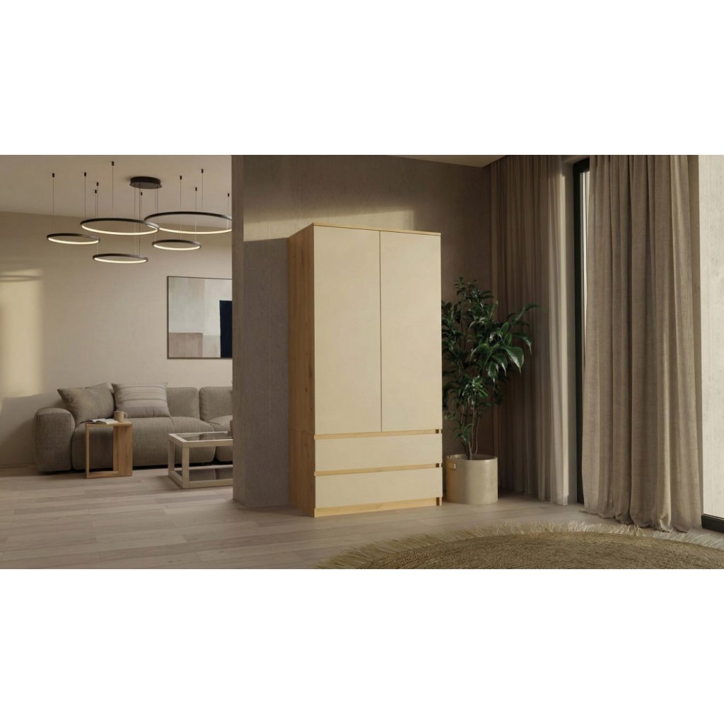 Šatní skříň ELLE 90 cm - Dub artisan/ kašmír