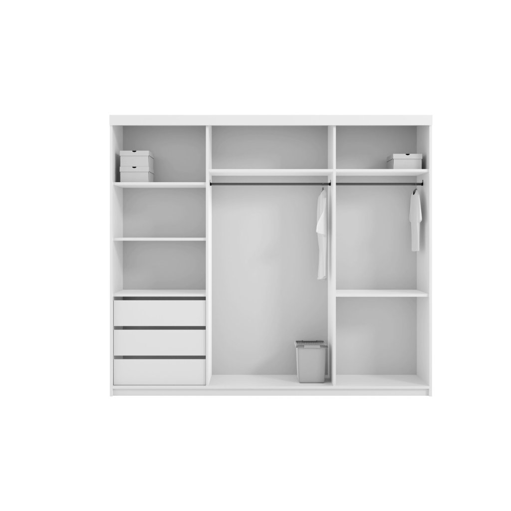 Hledáte-li spojení mezi elegantním designem a praktičností, tato šatní skříň je tím pravým řešením. Díky svému zajímavému designu se stane vynikajícím doplňkem každého interiéru. Tato skříň je rozdělena do tří sekcí, které nabízejí dostatek prostoru pro pro Vaše oblečení a další osobní věci, zatímco vestavěné zrcadlo Vám umožní rychle zkontrolovat svůj vzhled před tím, než vyrazíte ven.