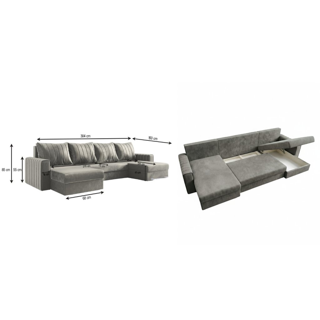 304 cm (šířka) × 150 cm (hloubka) × 85 cm (výška) | 260 x 135 cm (spací plocha)