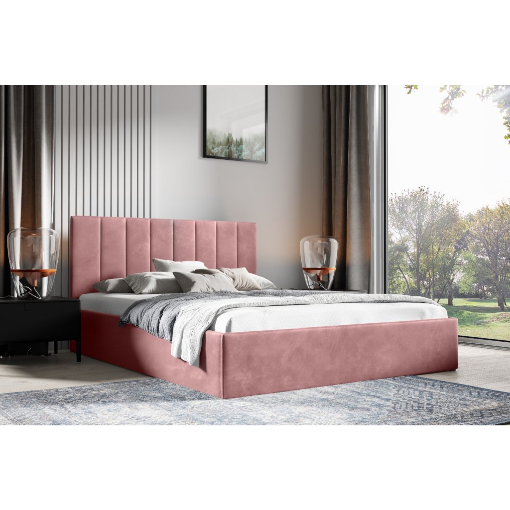 Čalouněná postel LENY 160x200 cm, Trinity 2323 Tmavá růžová