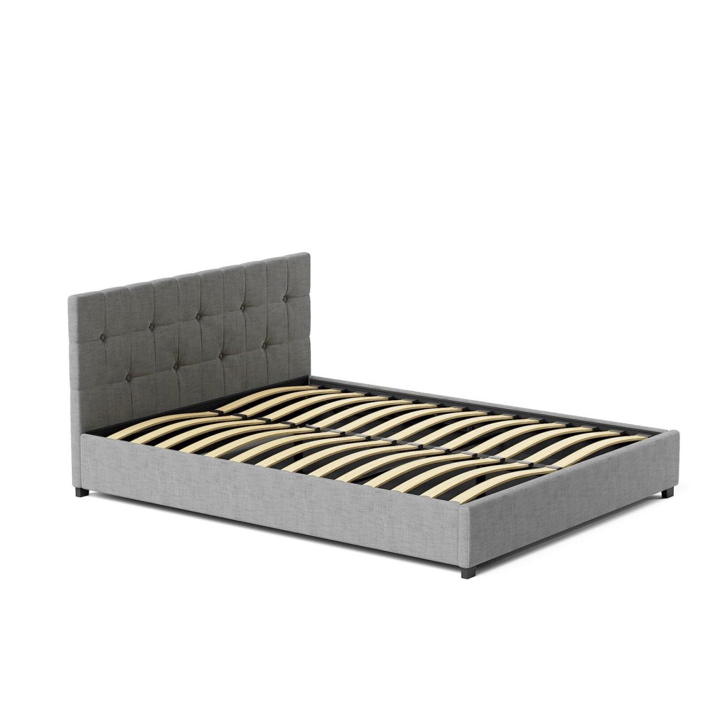 Moderní čalouněná postel ze série Modeno s lamelovým roštem, bez matrace, s úložným prostorem.