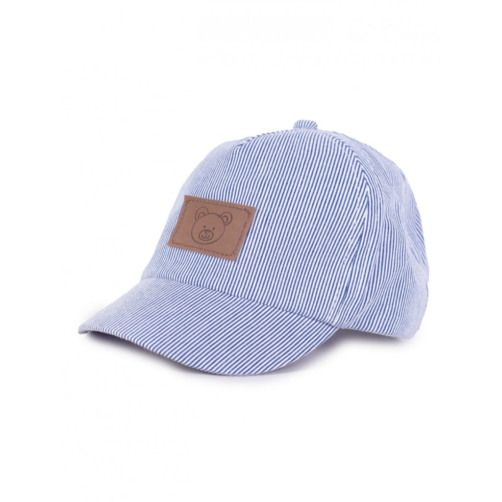 Dětská kšiltovka 42-46 cm - Modré proužky s medvídkem