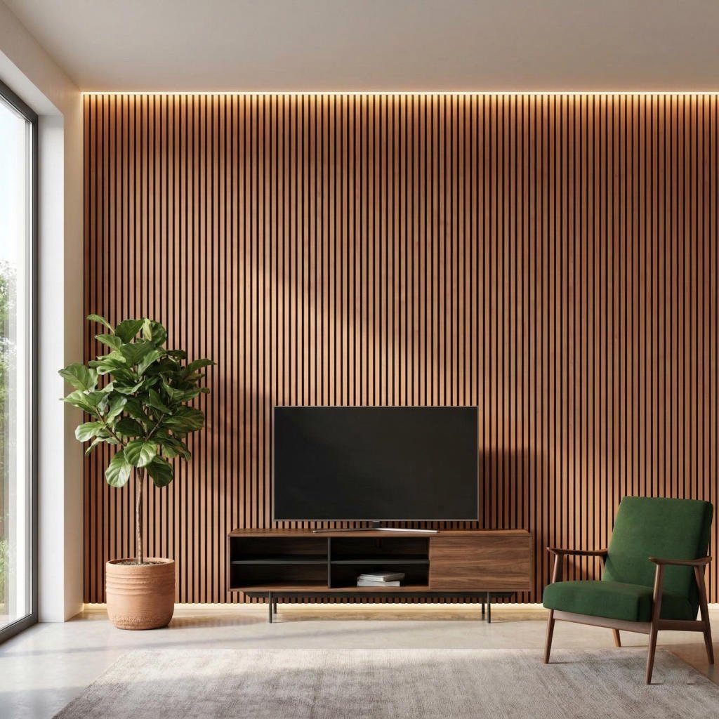 Dekorativní nástěnné lamely s filcem, Měď / černý 260x30x0,7 cm - 7 lamel