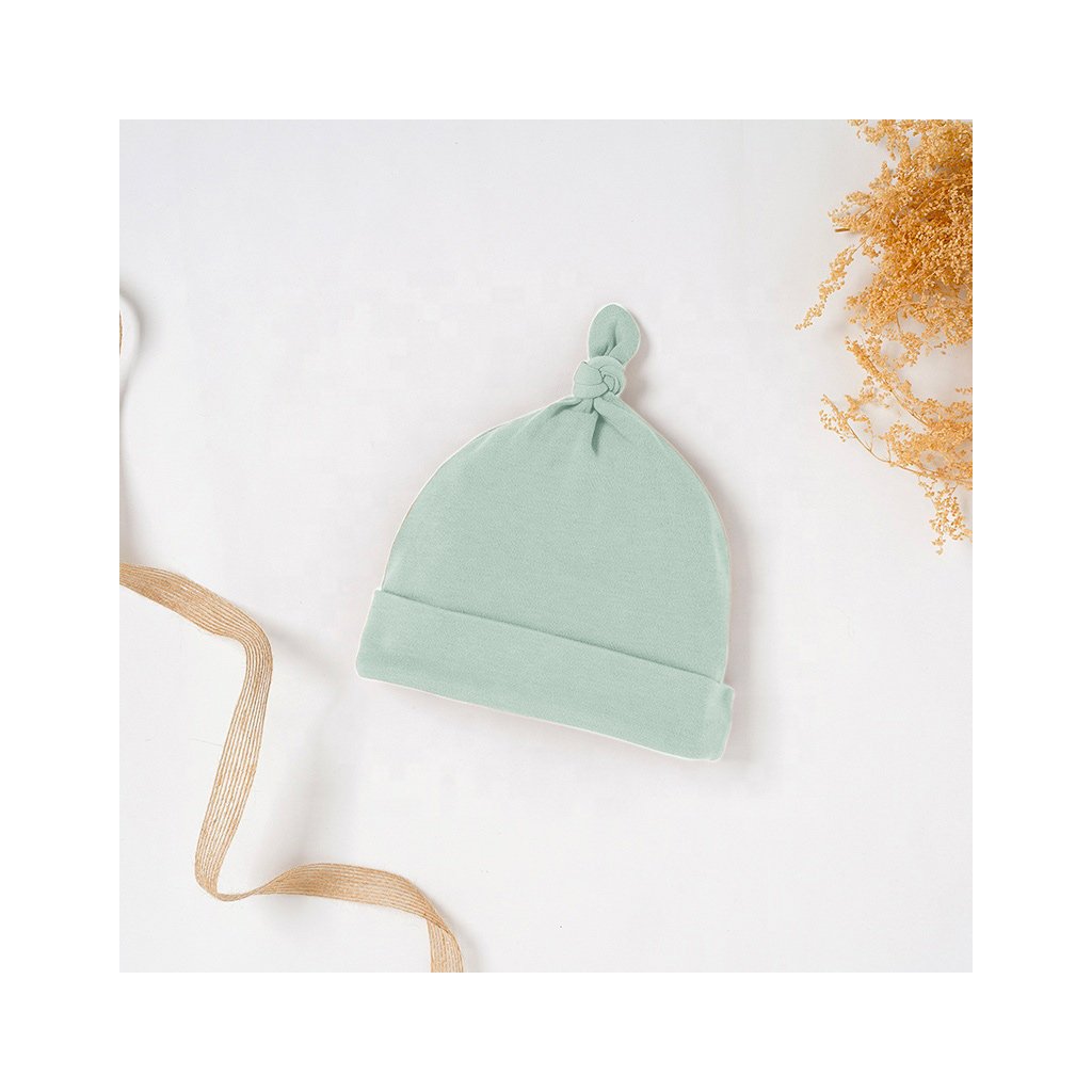 Dětská čepička s uzlíkem z BIO bavlny - 3-6 měsíců, Mintová