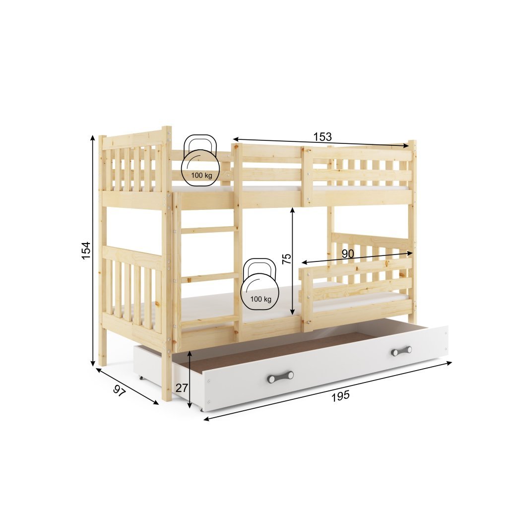 Dětská patrová postel KAPI 1, 190x90 cm
