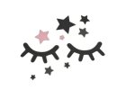 Dřevěná dekorace na zeď - hvězdičky a spící očka - růžová