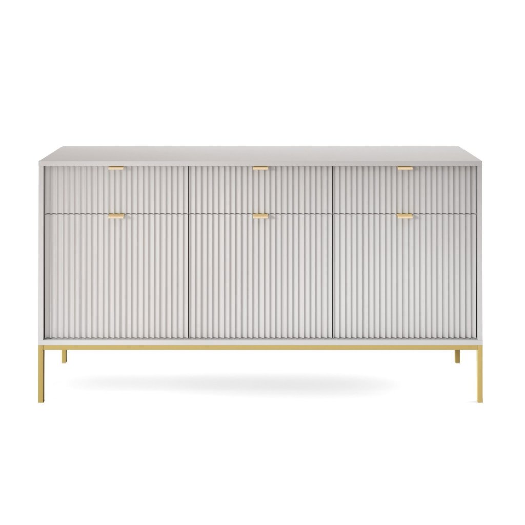 Představte si nejen moderní, ale také funkční kus nábytku, který se stane středobodem Vašeho obývacího pokoje - moderní komoda NEMO. Tento kousek nábytku je dokonalým spojením moderních prvků v dekoru Šedá s vysokými kovovými nohami v černé nebo zlaté barvě se zlatými úchytky.