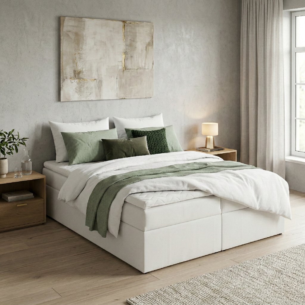 Kontinentální čalouněná postel Classic - Cassablanca Bílá (180x200 cm)