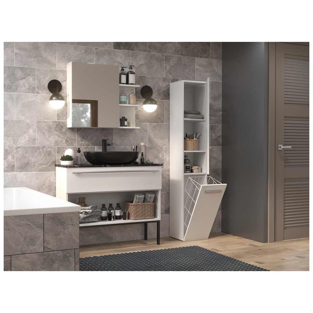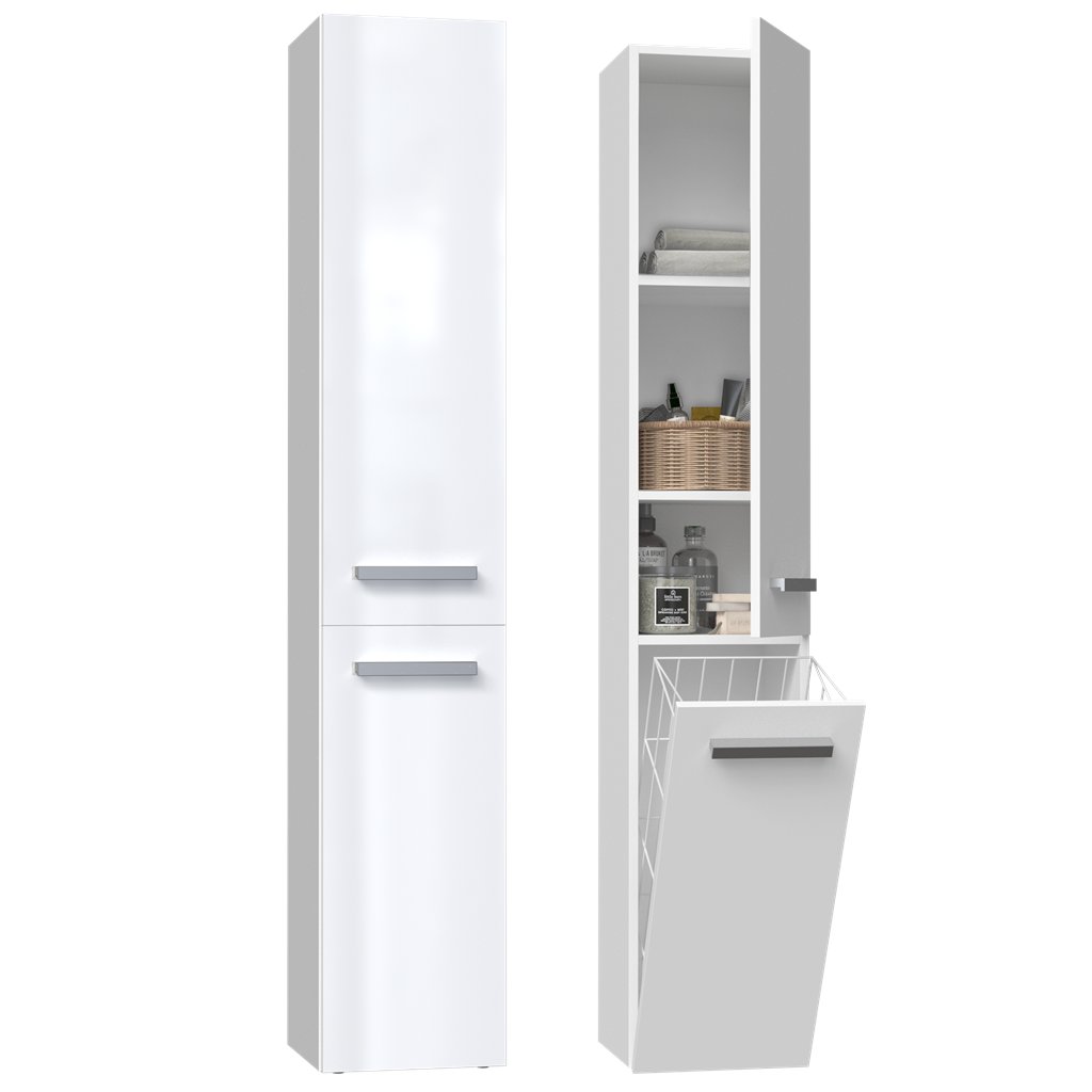 Koupelnová skříňka s košem na prádlo NEL IV, Bílý lesk