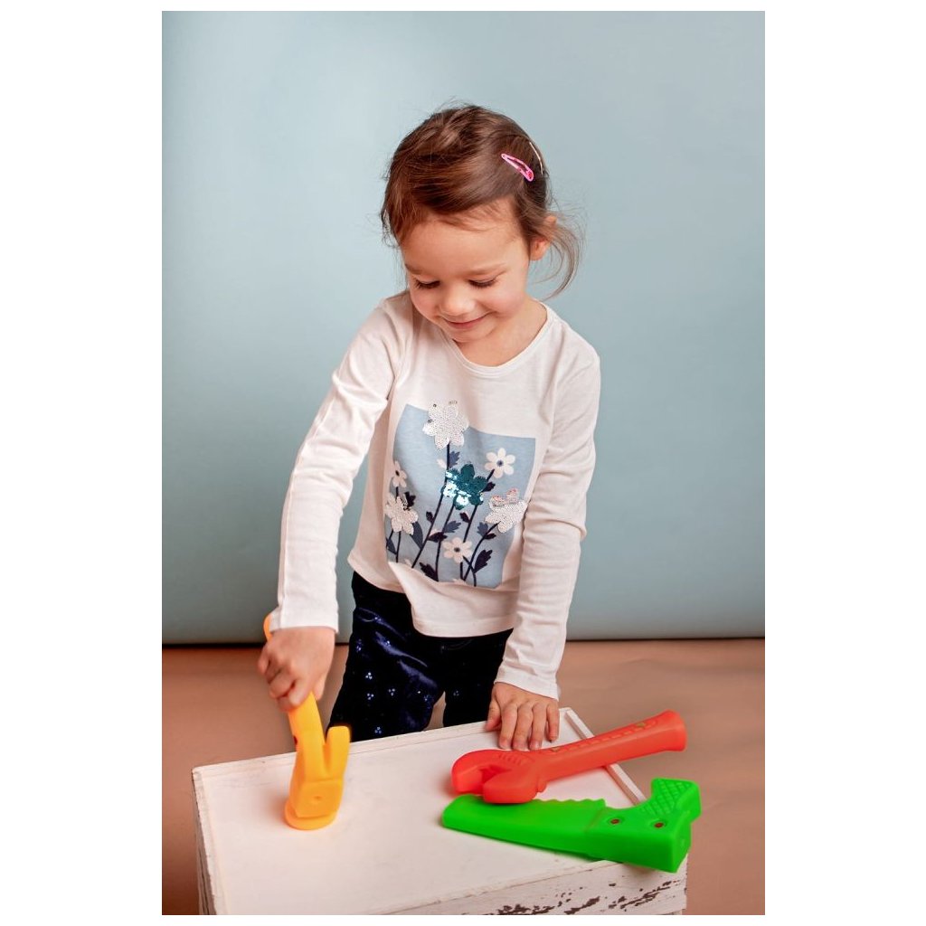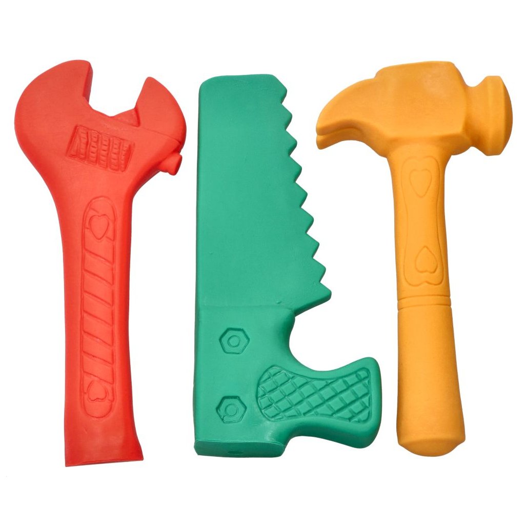 Sada pro malé kutily - tří kusy měkkého nářadí jsou vynikající vývojová hračka. Naučte své dítě poznávat, pojmenovávat nástroje a barvy. Ukažte dítěti jak fungují a k čemu slouží. Pomozte malému kutilovi postavit jeho první dílnu. Se sadou měkkého nářadí již nebude problém cokoliv opravit. Pila, kladivo a hasák z jemného materiálu podněcují fantazii, učí soustředění a povzbuzují celou rodinu ke hře.
