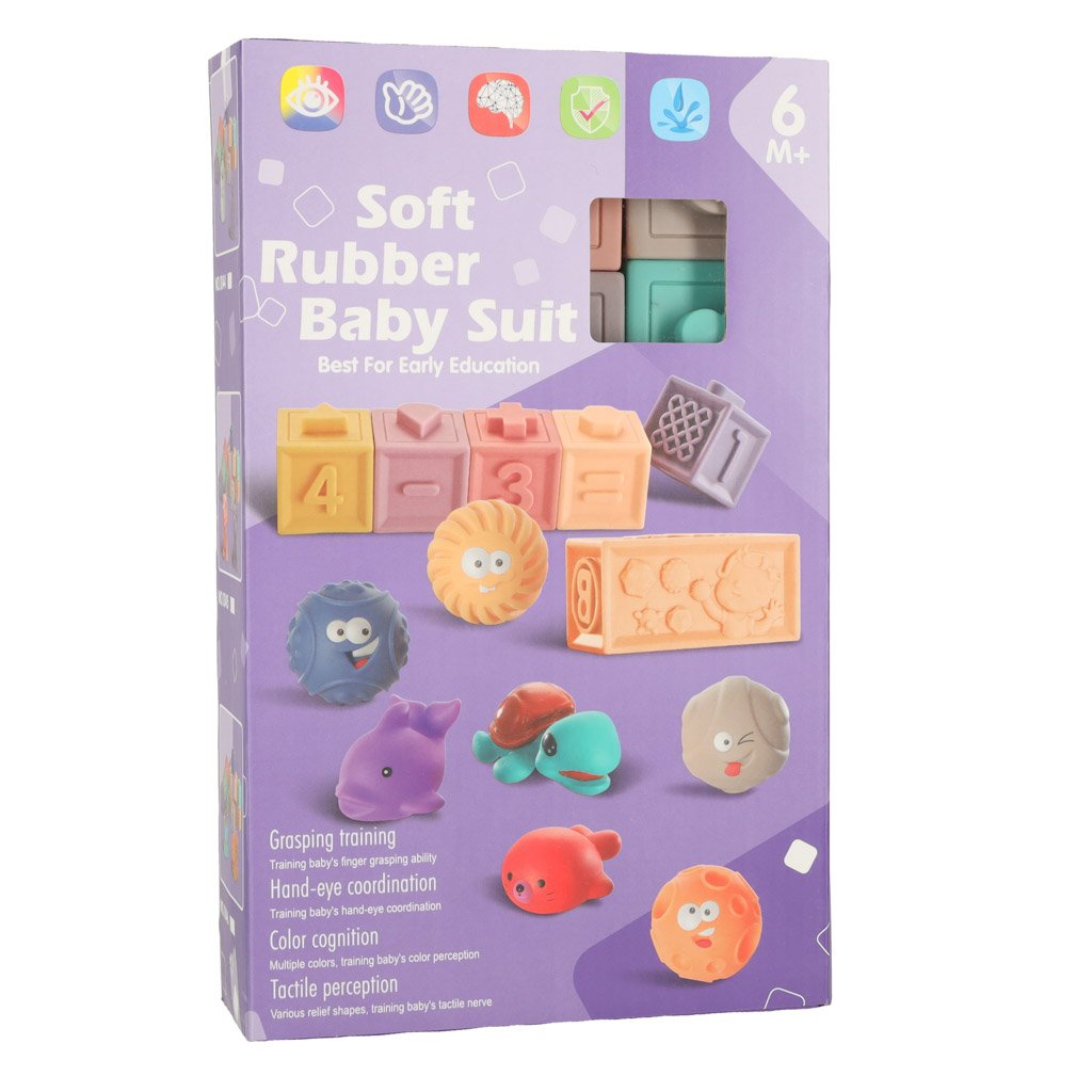 Měkké senzorické kostky a balónky, 15 ks - pastelové barvy