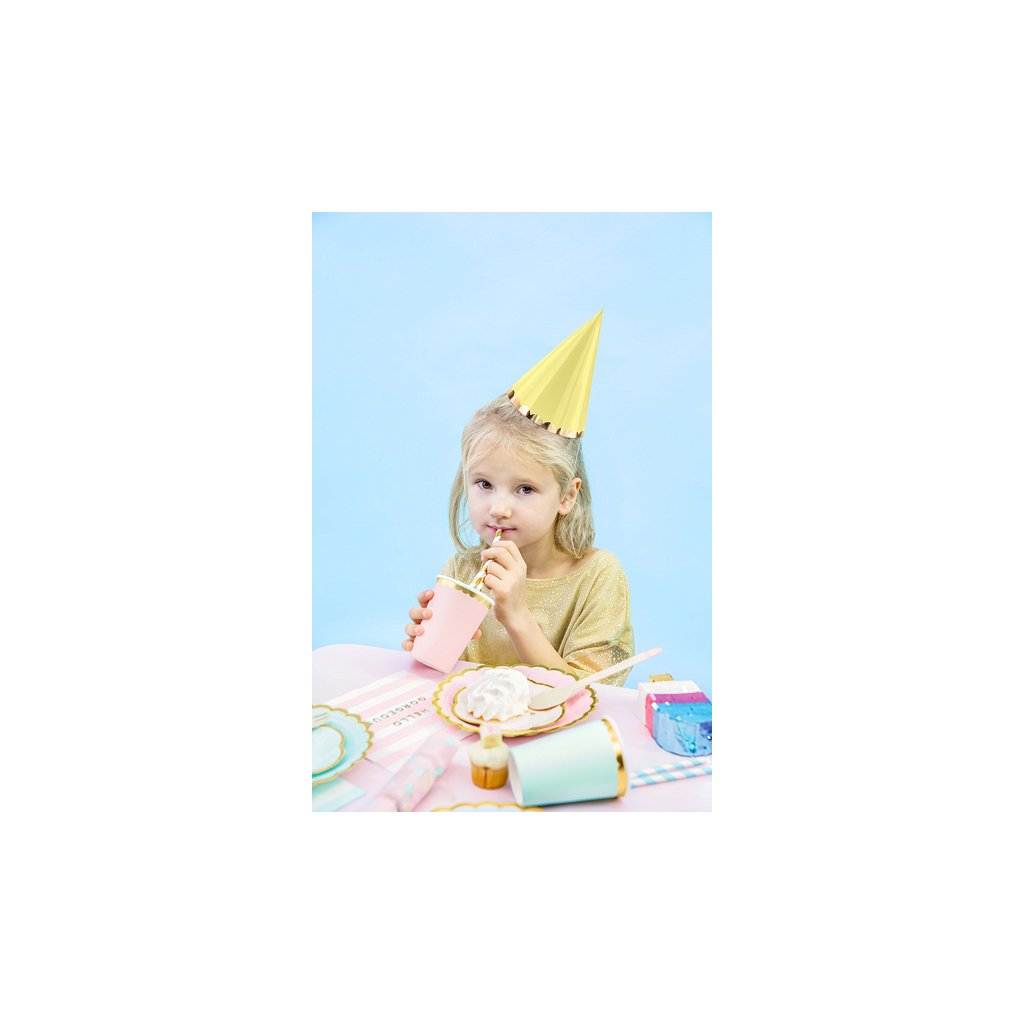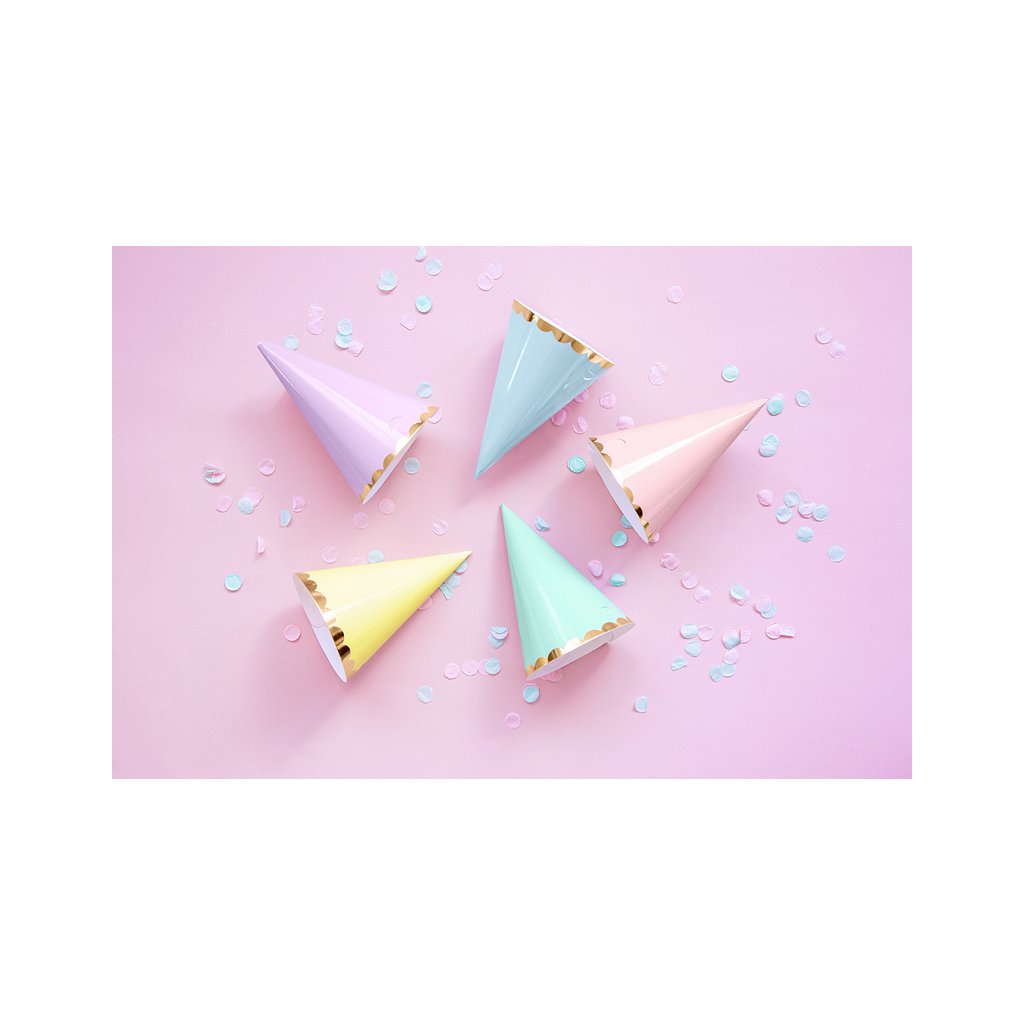 Balení obsahuje 6 kusů papírových čepiček v barevném pastelovém mixu.