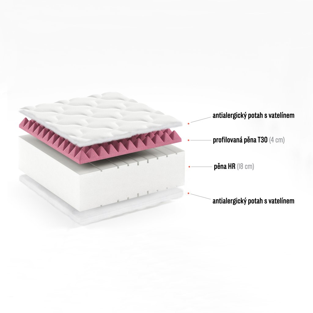 | ? Materiál: | HR pěna, PUR profilovaná pěna |