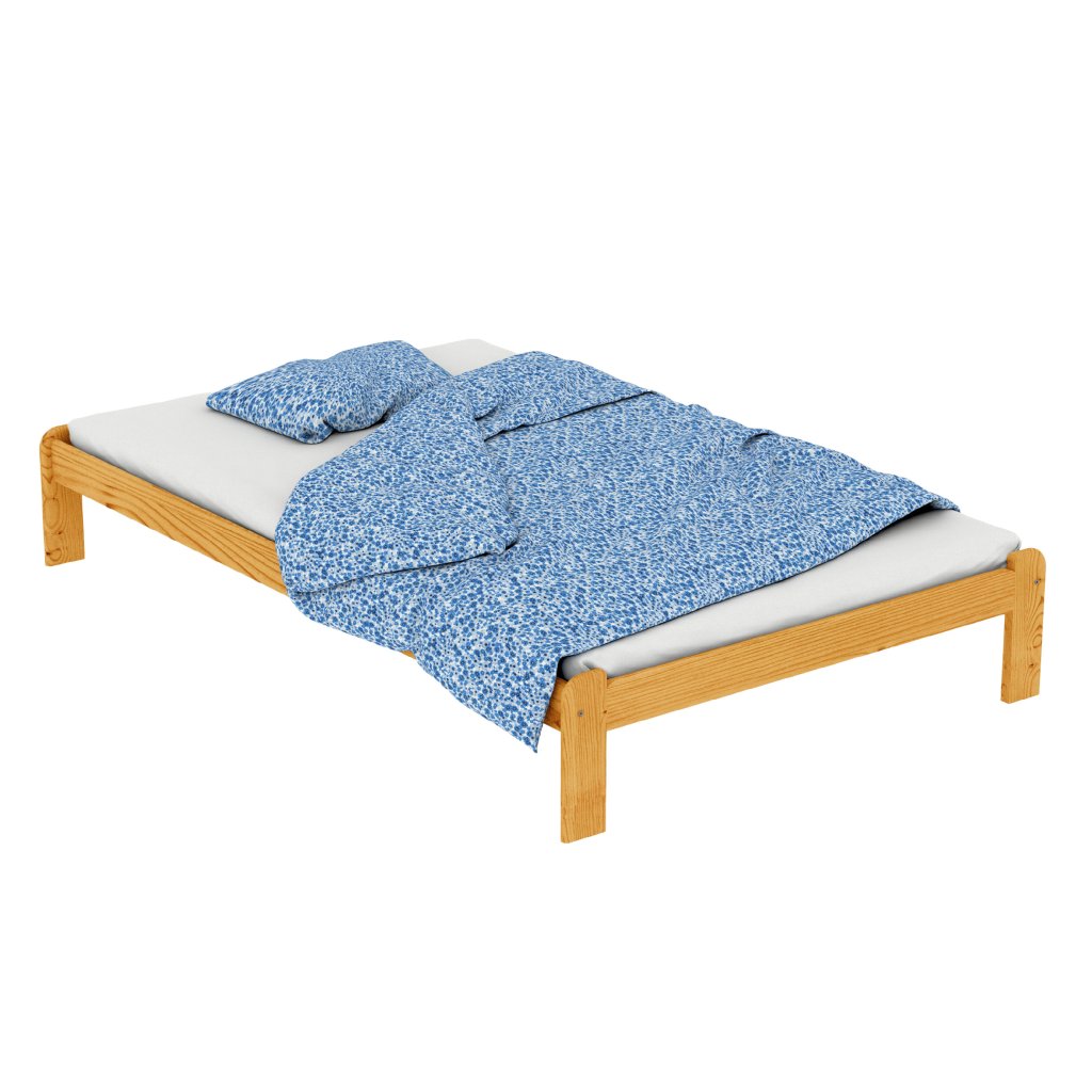 Nová postel z masivu borovice o síle 26 mm. Postele jsou lakovány dvakrát bezbarvým ekologicky a zdravotně nezávadným lakem. Lůžka jsou ručně barvená, broušená a znovu lakovaná, pouze tento postup zaručí požadovaný konečný výsledek . Postel vypadá dokonale a zachovává si svou původní strukturu.