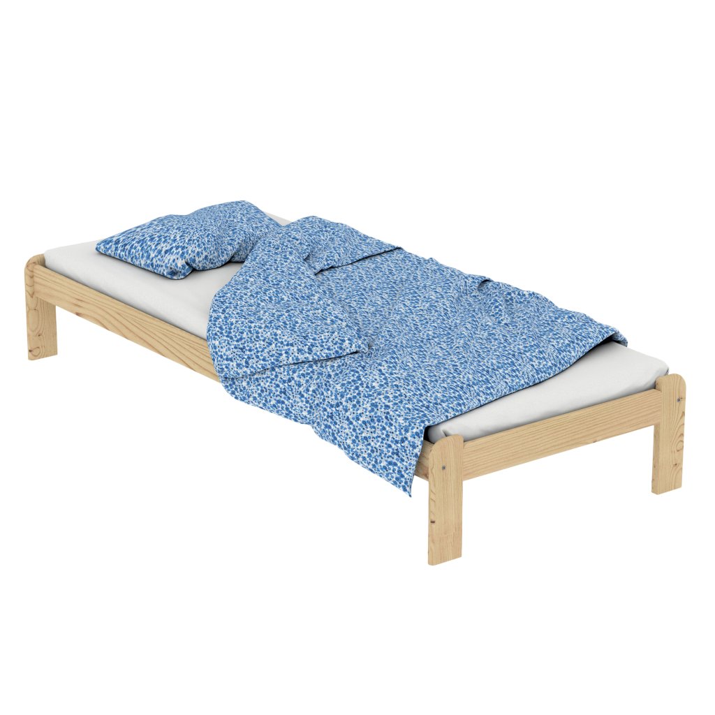Nová postel z masivu borovice o síle 26 mm. Postele jsou lakovány dvakrát bezbarvým ekologicky a zdravotně nezávadným lakem. Lůžka jsou ručně barvená, broušená a znovu lakovaná, pouze tento postup zaručí požadovaný konečný výsledek . Postel vypadá dokonale a zachovává si svou původní strukturu.