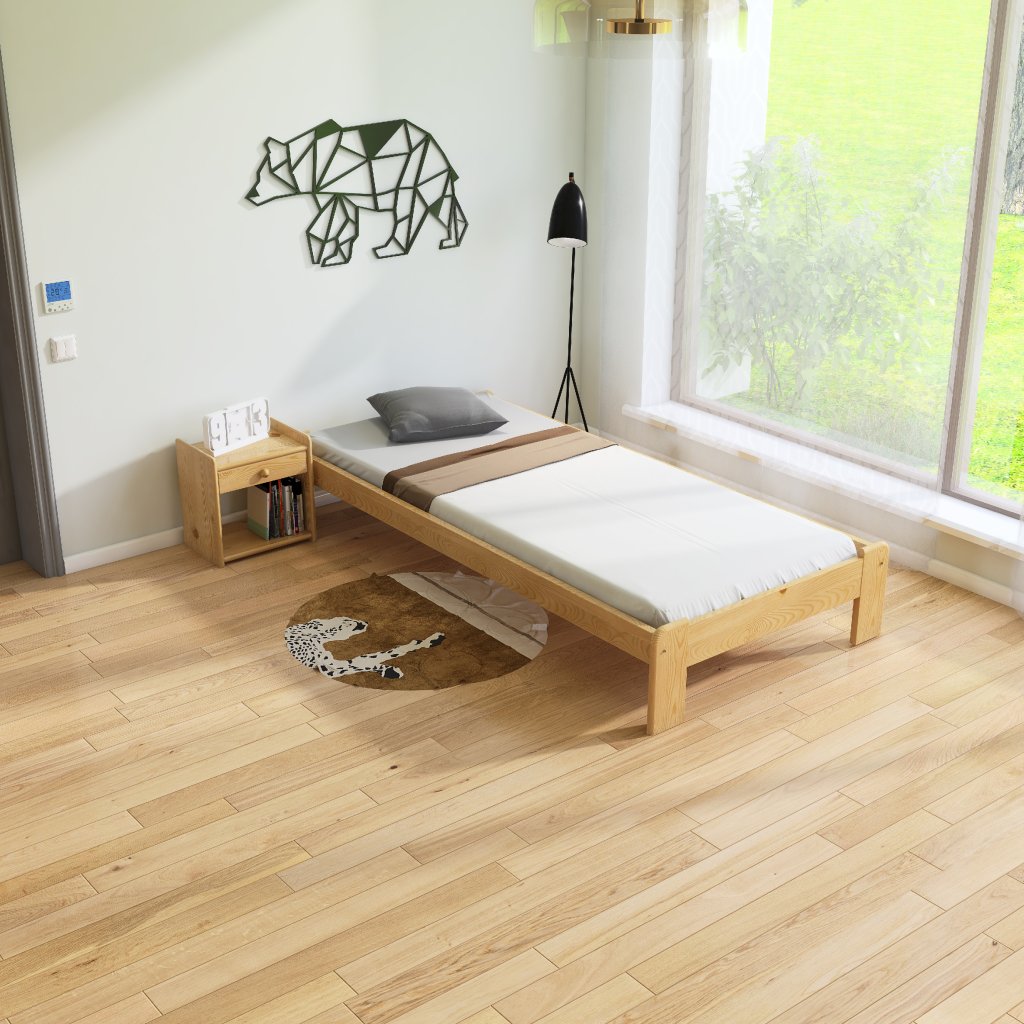 Nová postel z masivu borovice o síle 26 mm. Postele jsou lakovány dvakrát bezbarvým ekologicky a zdravotně nezávadným lakem. Lůžka jsou ručně barvená, broušená a znovu lakovaná, pouze tento postup zaručí požadovaný konečný výsledek . Postel vypadá dokonale a zachovává si svou původní strukturu.