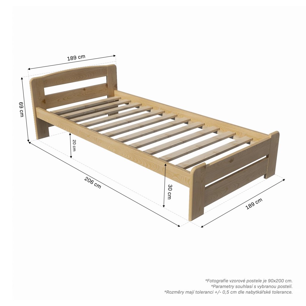 Postel Petra z masivu 90 x 200 cm - barva Borovice - 2. jakost