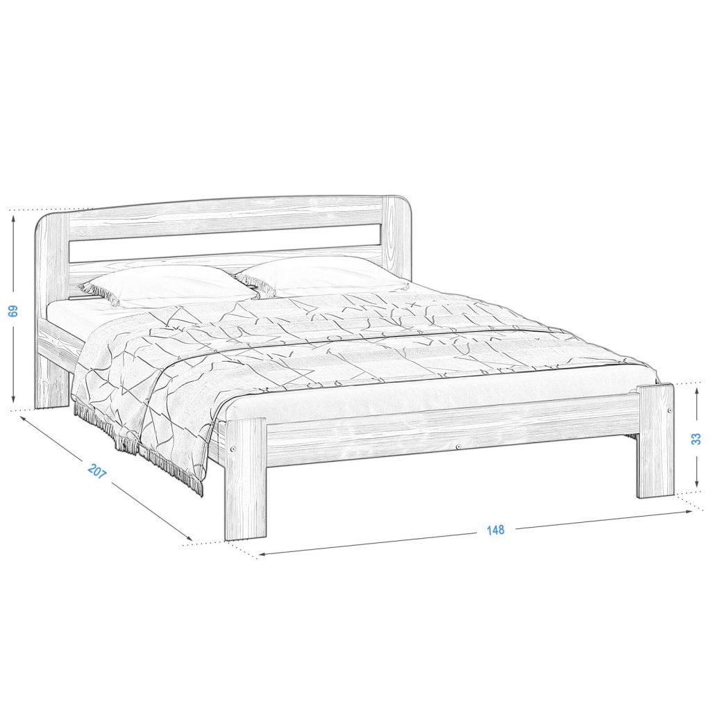 Nová postel z masivu borovice o síle 26 mm. Postele jsou lakovány dvakrát bezbarvým ekologicky a zdravotně nezávadným lakem. Lůžka jsou ručně barvená, broušená a znovu lakovaná, pouze tento postup zaručí požadovaný konečný výsledek . Postel vypadá dokonale a zachovává si svou původní strukturu. Postele v barevných provedeních olše, dub a ořech, jsou napřed mořeny ve výše zmíněných odstínech a následně dvakrát lakovány průhledným lakem.