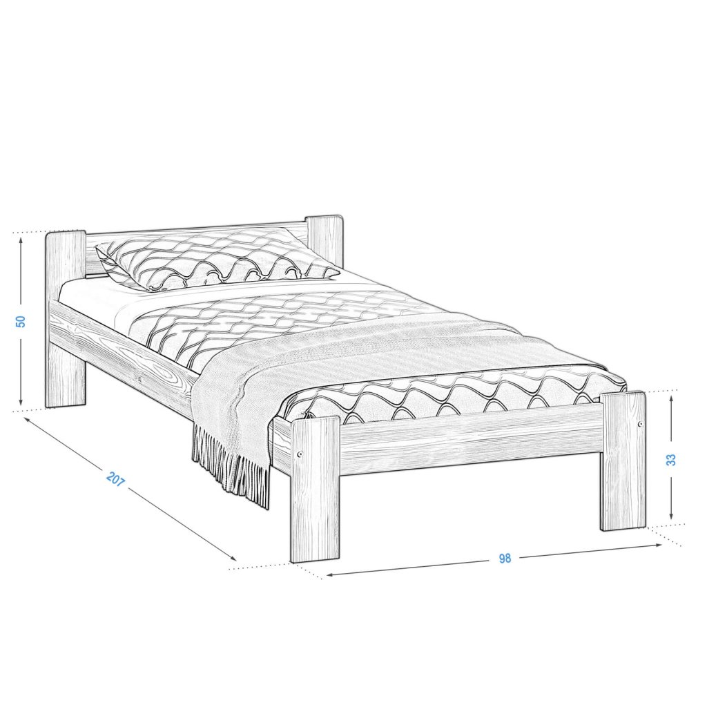 Rozměrové značení postele zároveň určuje velikost otvoru pro matraci, resp. rozměr matrace. K těmto postelím nabízíme v samostatných sekcích matrace, noční stolky, šuplíky, komody a další produkty z masivu.