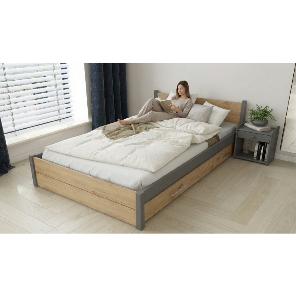 Postel z masivu Iris 80x200 cm, GRAFIT/Dub Artisan
