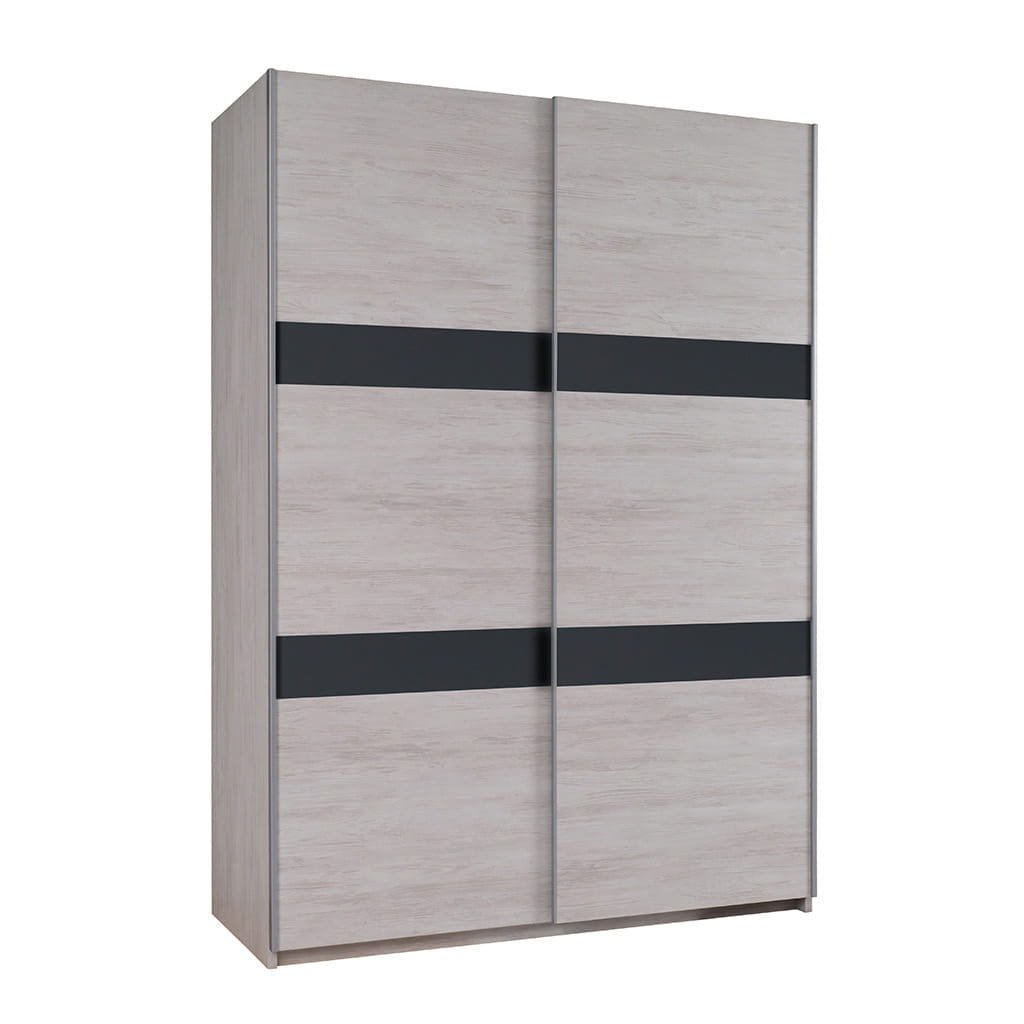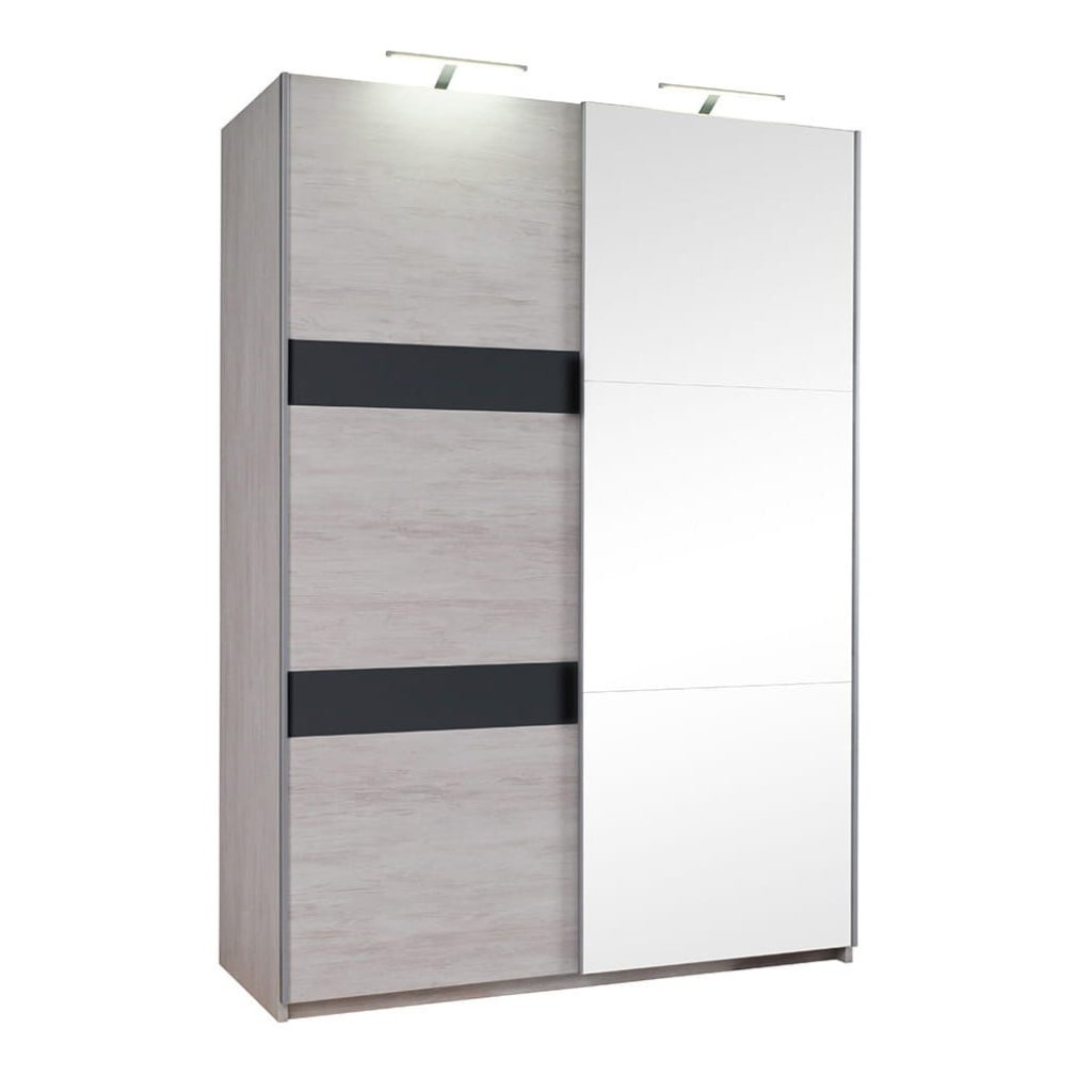 Posuvná skříň Devon - Bílý dub + šedý lesk