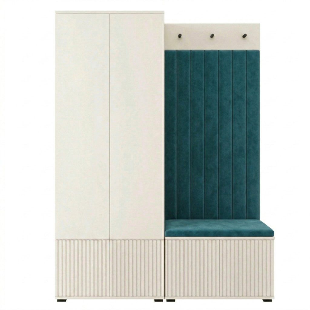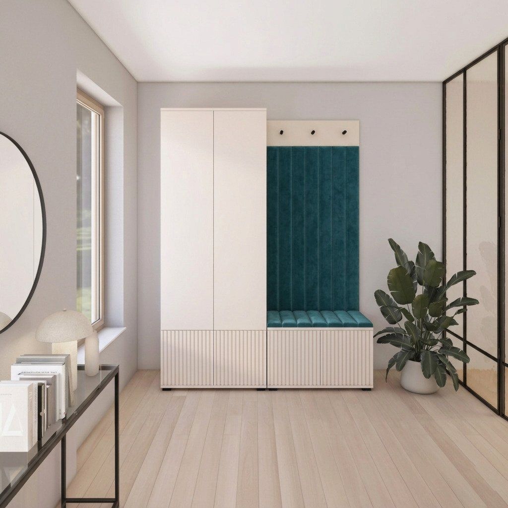 Předsíňová stěna s čalouněnými panely RAYO 1 s nízkými nožkami bez zrcadla - Kašmír / Azurová 2313
