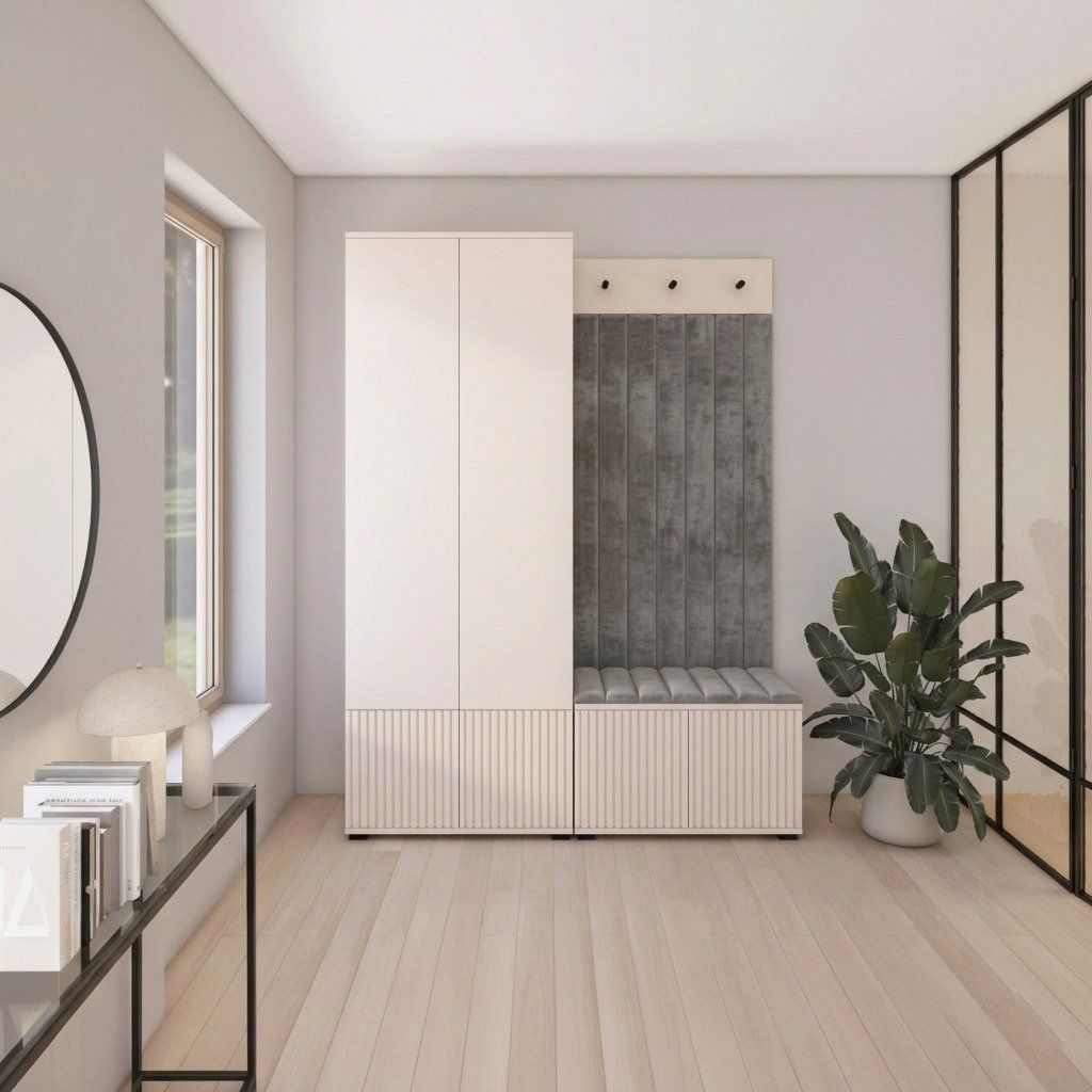 Předsíňová stěna s čalouněnými panely RAYO 1 s nízkými nožkami bez zrcadla - Kašmír / Šedá 2314
