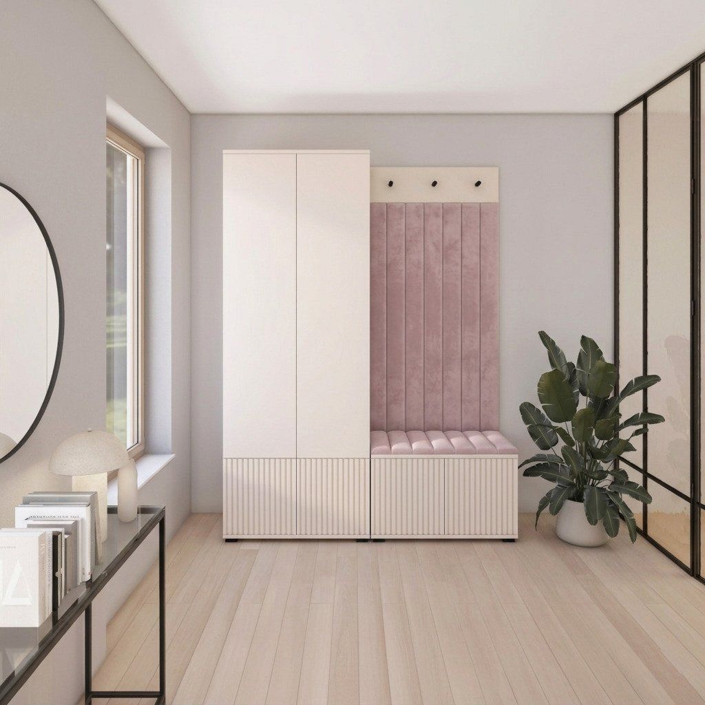 Předsíňová stěna s čalouněnými panely RAYO 1 s nízkými nožkami bez zrcadla - Kašmír / Světlá růžová 2319