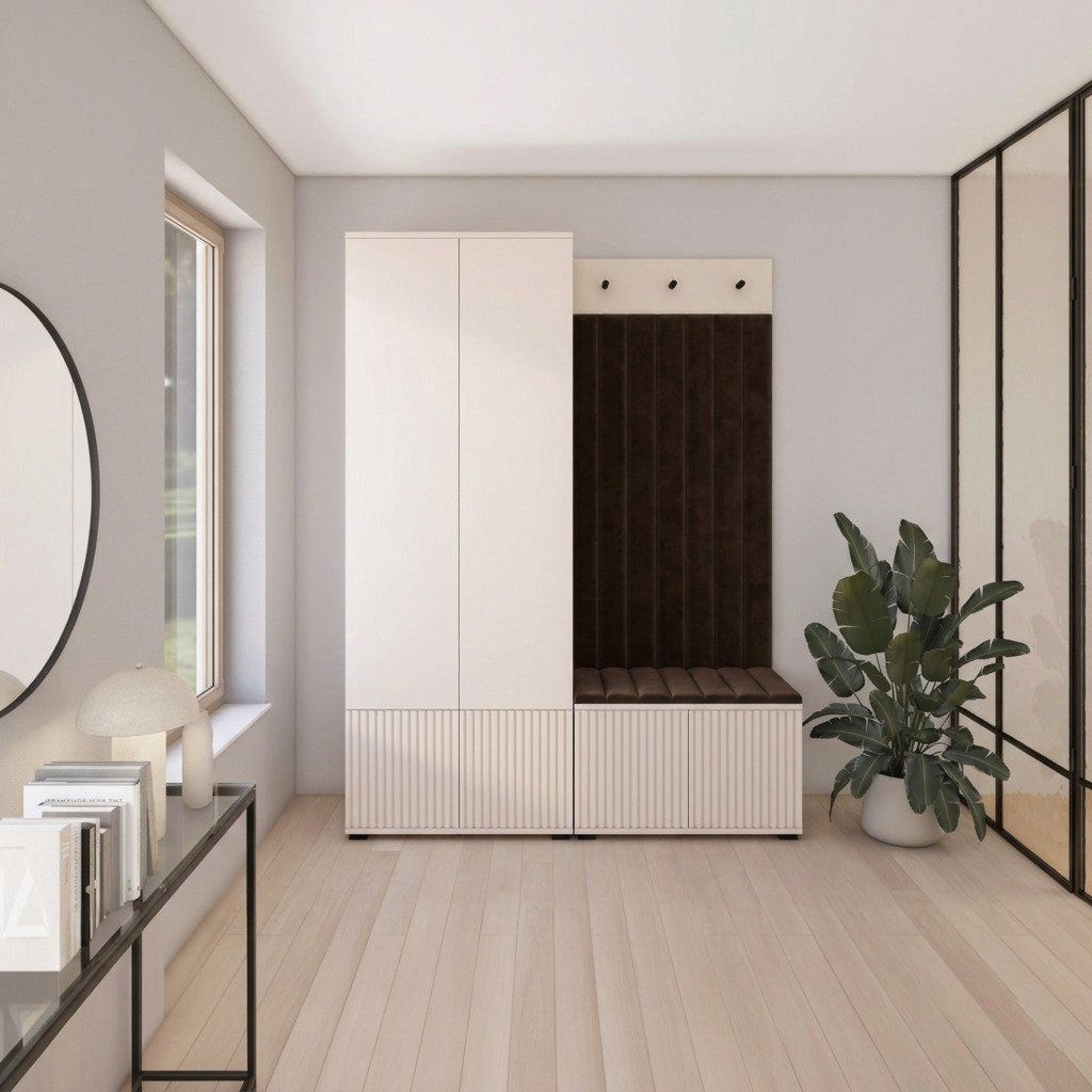 Předsíňová stěna s čalouněnými panely RAYO 1 s nízkými nožkami bez zrcadla - Kašmír / Tmavá hnědá 2308