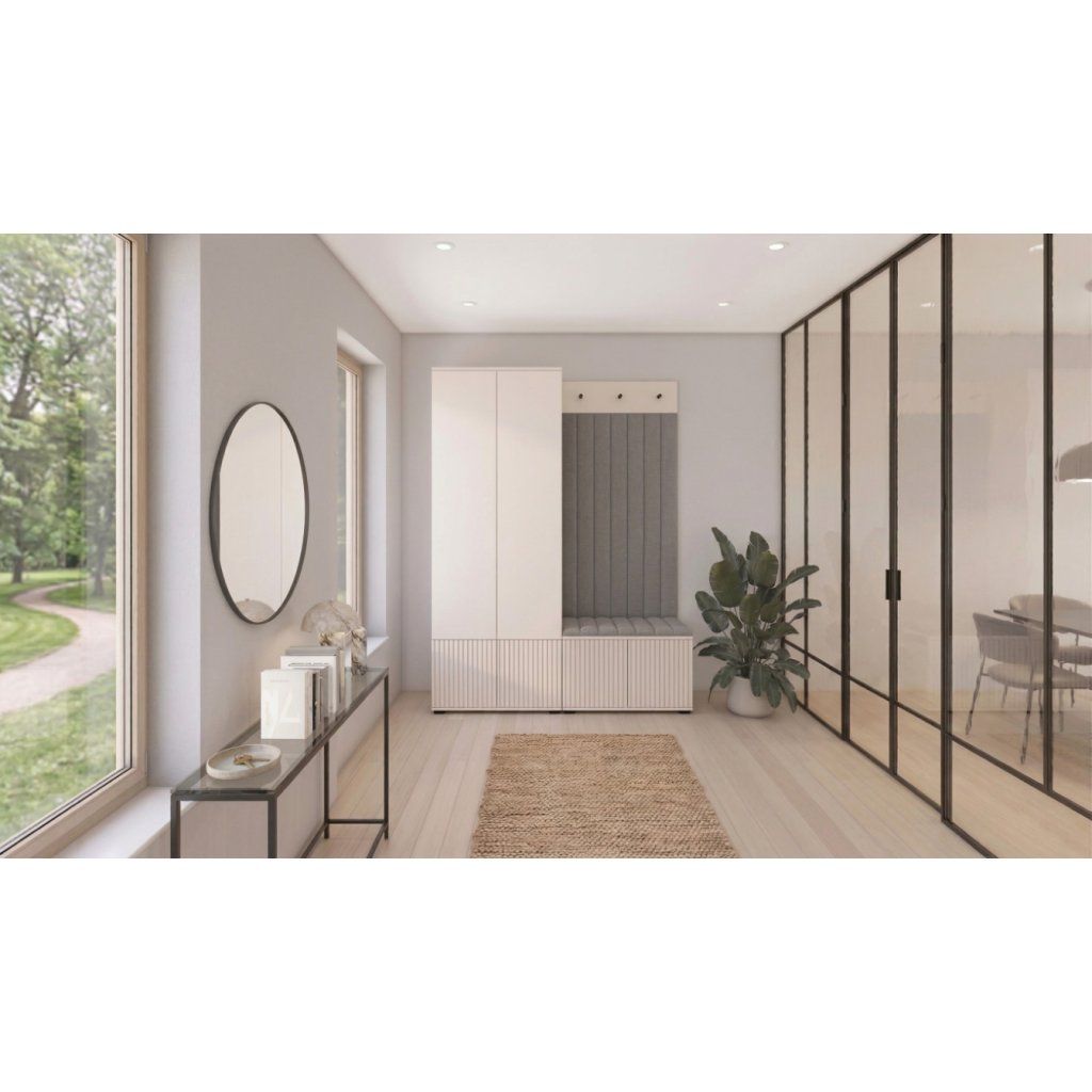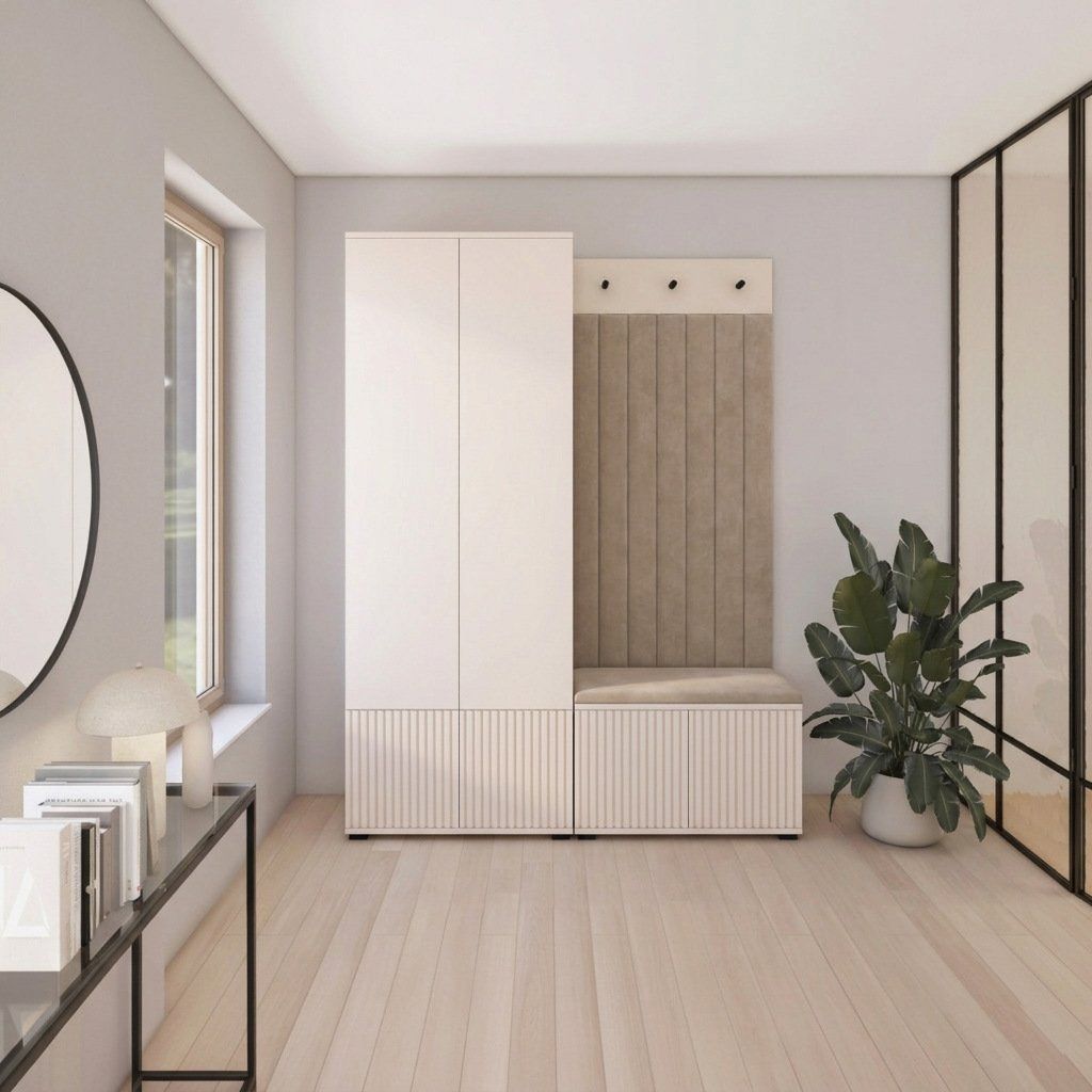 Předsíňová stěna s čalouněnými panely RAYO 1 s nízkými nožkami bez zrcadla - Kašmír / Tmavá krémová 2302