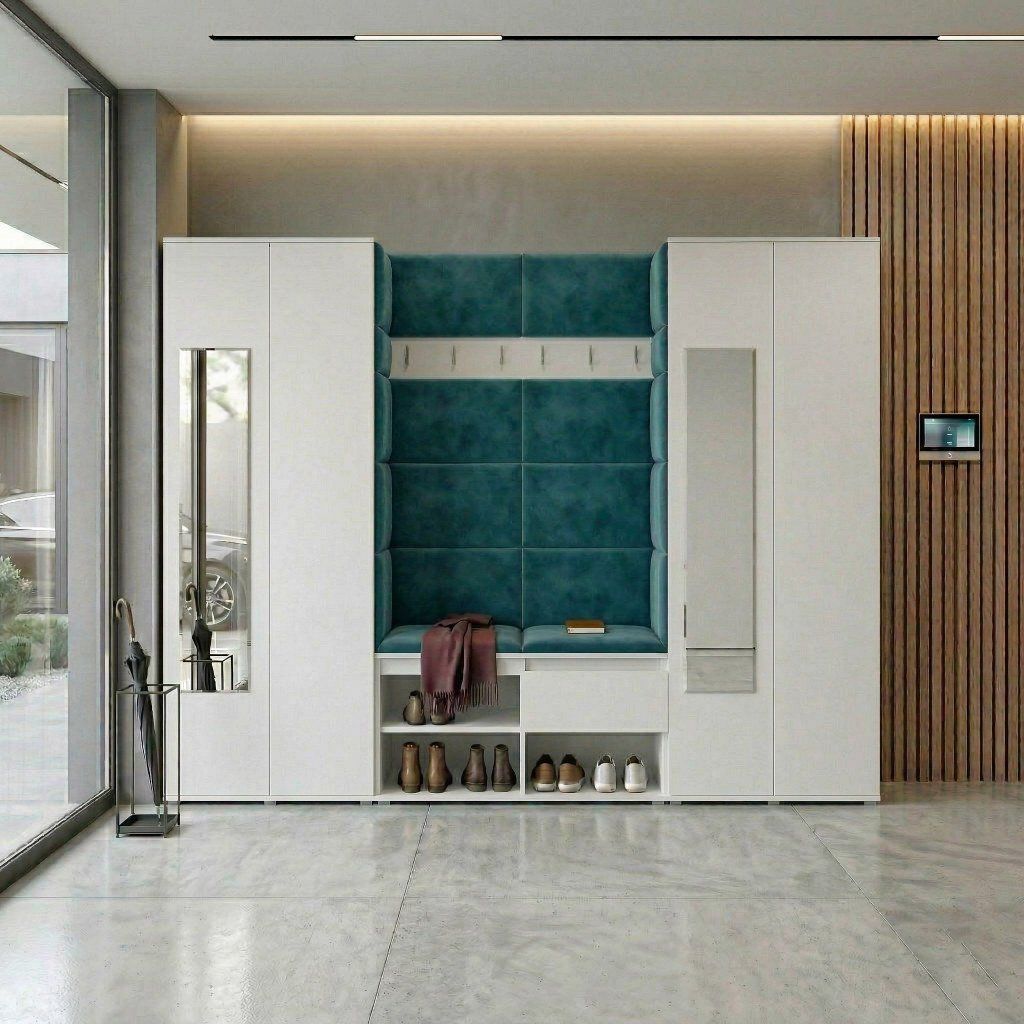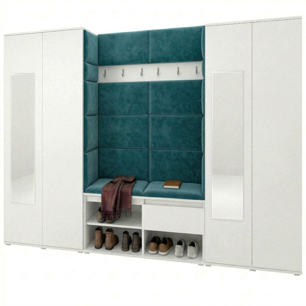 Předsíňová stěna s čalouněnými panely Trinity 10 - Bílá / Azurová 2313