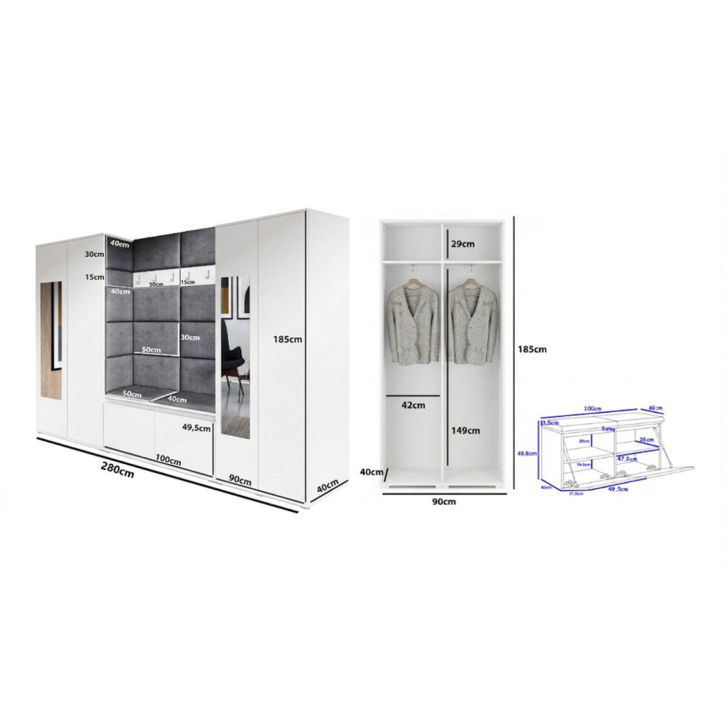 | Funkce/vybavení: | Se zrcadlem, S věšákem, S prostorem pro sezení, S botníkem, S čalouněnými panely, Se skříní |