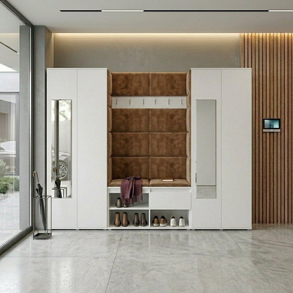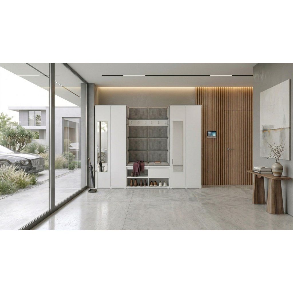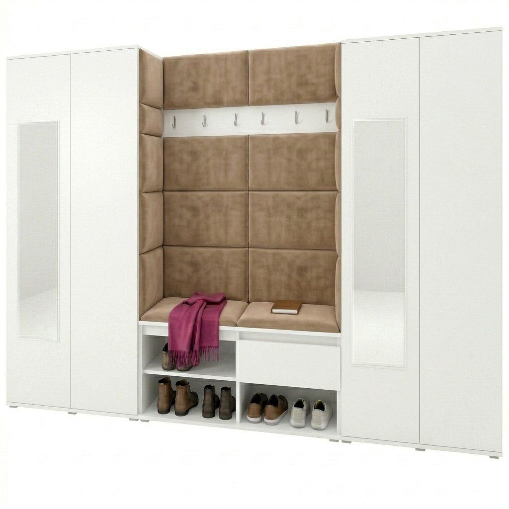 Předsíňová stěna s čalouněnými panely Trinity 10 - Bílá / Béžová 2304
