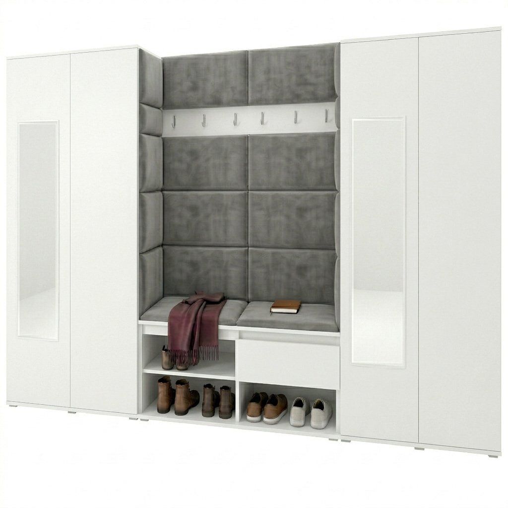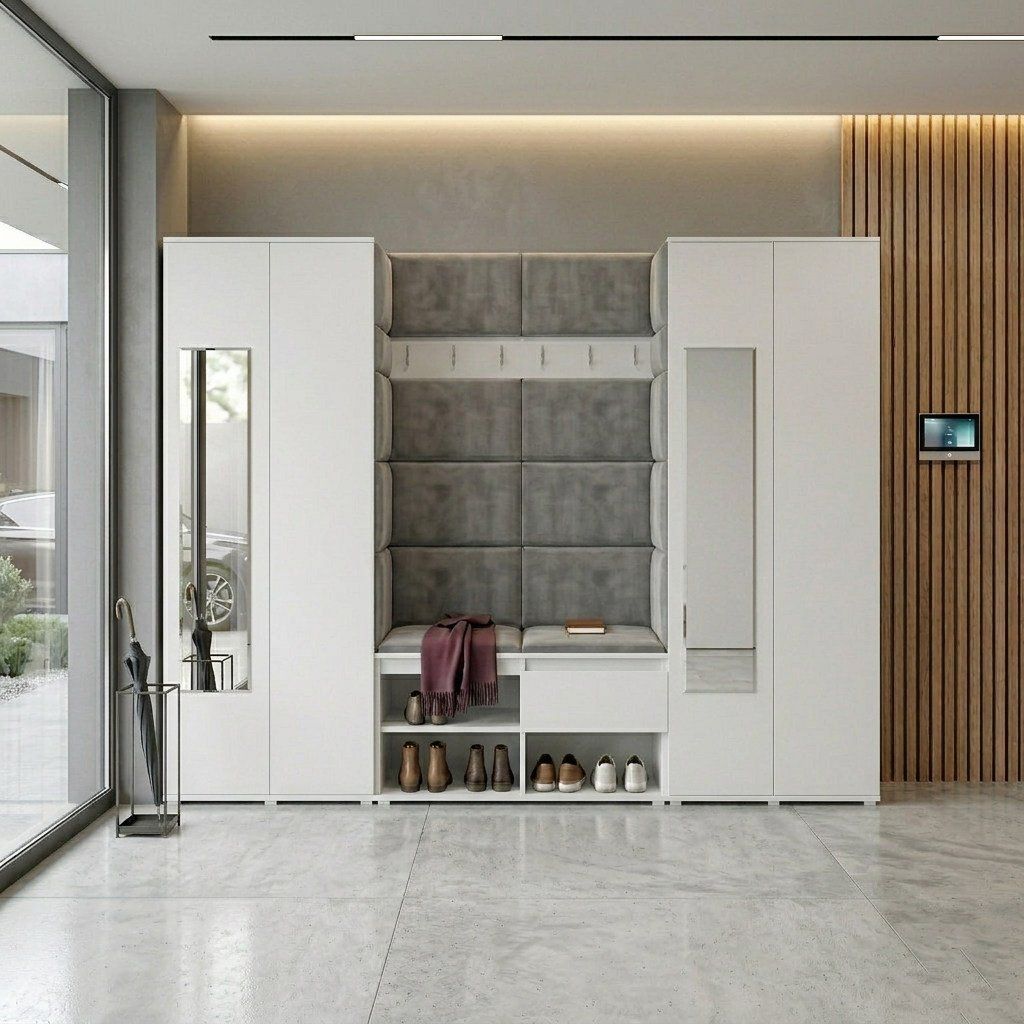 Předsíňová stěna s čalouněnými panely Trinity 10 - Bílá / Šedá 2314
