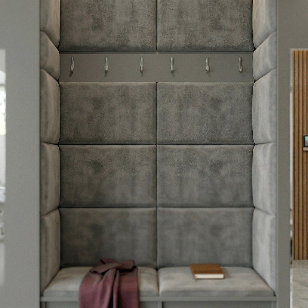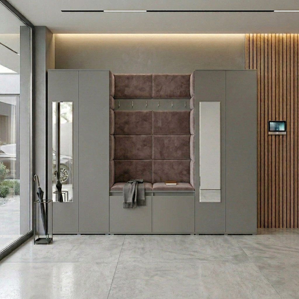 Předsíňová stěna s čalouněnými panely Trinity 10 - Grafit / Světlá hnědá 2306